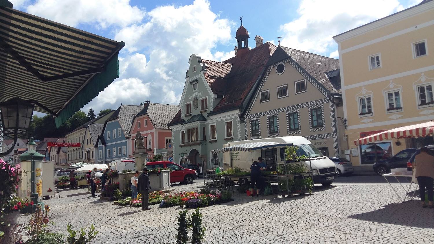 Wieder eine neue Rad Strecke und ganz schön den Berg rauf. Dann aber wieder runter und schon waren wir im Ort Weyer. Da war Markt, wir stellten unsere Räder ab, versperrten sie - sicher ist sicher - und spazierten durch den Markt