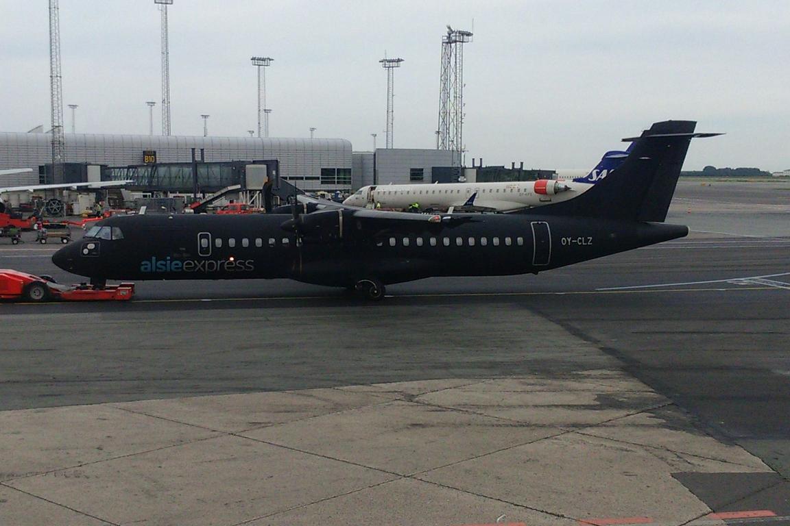 Nach kurzem Flug kommen wir in Kopenhagen an . die meisten Passagiere haben Transfer - wir müssen ja unsere Taschen einsammeln. Auf der Anzeigetafel steht Wartezeit 14 Minuten, aber nach 3 Minuten heißt es die Koffer kommen - das lag dann wohl daran, dass es kaum welche waren. Also einmal durch den Ausgang, am Automaten wieder einchecken und dann automatisch auch die Taschen aufgeben - das ging schnell. Weiterflug ist erst um 18.30 Uhr, weil Okke übersehen hatte, dass es noch eine frühere Möglichkeit gegeben hätte - egal. Wir suchen uns einen netten Platz und schauen Flieger an. Wir haben was zu essen mit und die Zeit vergeht schnell. Unser Flieger ist zu spät - Okke erwischt dafür noch einen ganz besonderen Flieger, nämlich diesen Schwarzen