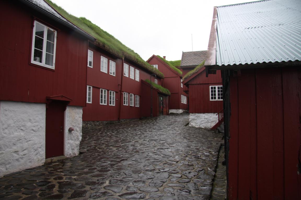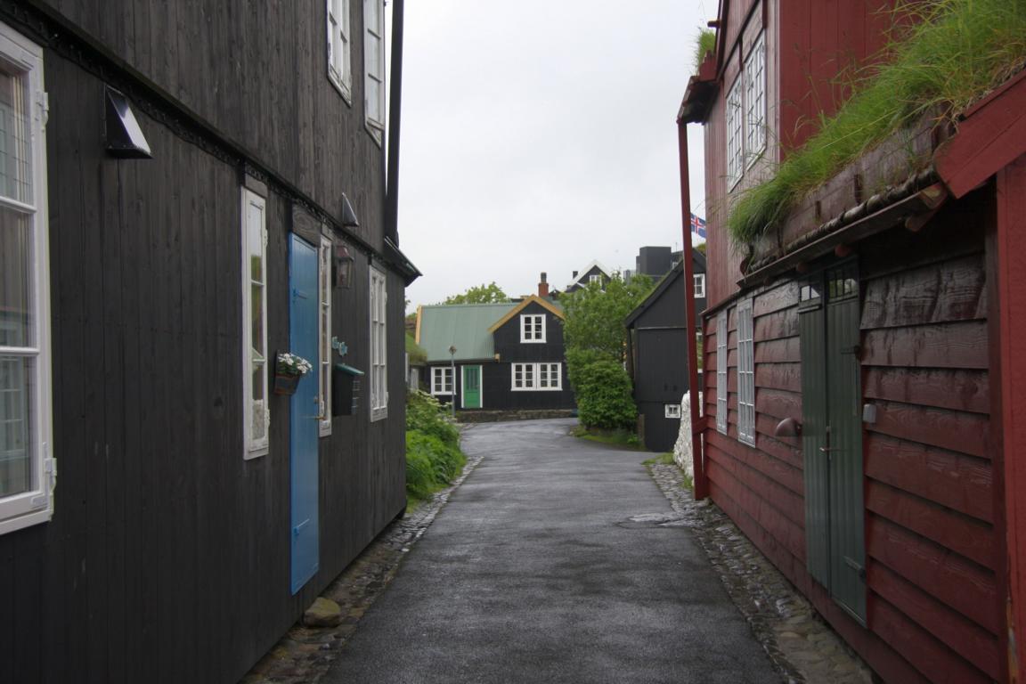 Wir befinden uns jetzt in einem Bereich der sich Tinganes nennt. Das ist der älteste Teil der Stadt und das Regierungsviertel.Das ganze liegt auf einer 200m langen und 80 m breiten Halbinsel zwischen dem Osthafen und dem Westhafen. Hier siedelten die ersten Wikinger im 9. Jahrhundert -