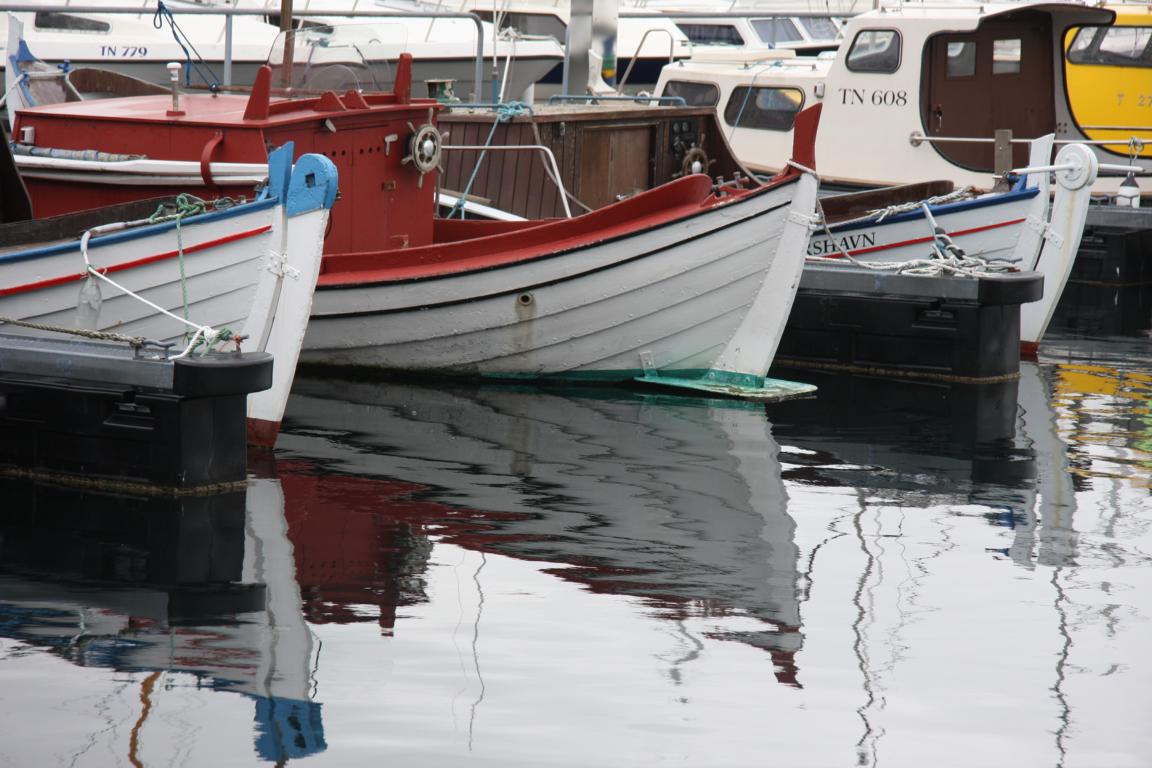 Wir laufen am Hafenbecken entlang. Ich bin überrascht wie viele kleine Holzbote es gibt. Mir gefallen die kräftigen Farben