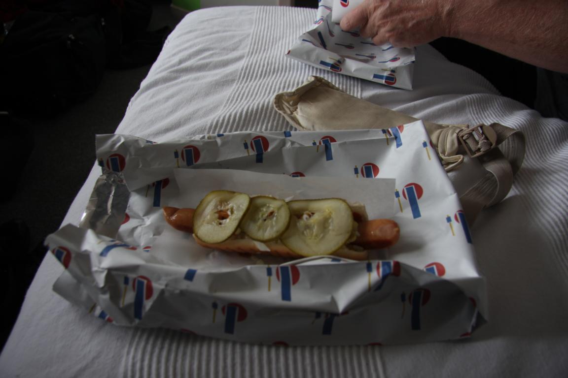 Dann finden wir einen Imbiss, wo es ein halbes Hühnchen mit Pommes für Okke und für uns einen Polser gibt. Während ich auf das Essen warte, mein ein Mann zu mir, man habe heute einen Wal gefangen - jedenfalls habe ich das so verstanden - und der käme in den Hafen. Wann genau wisse man nicht, vielleicht in einer Stunde.... da ahnte ich noch nicht was kommt!