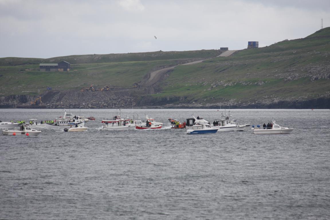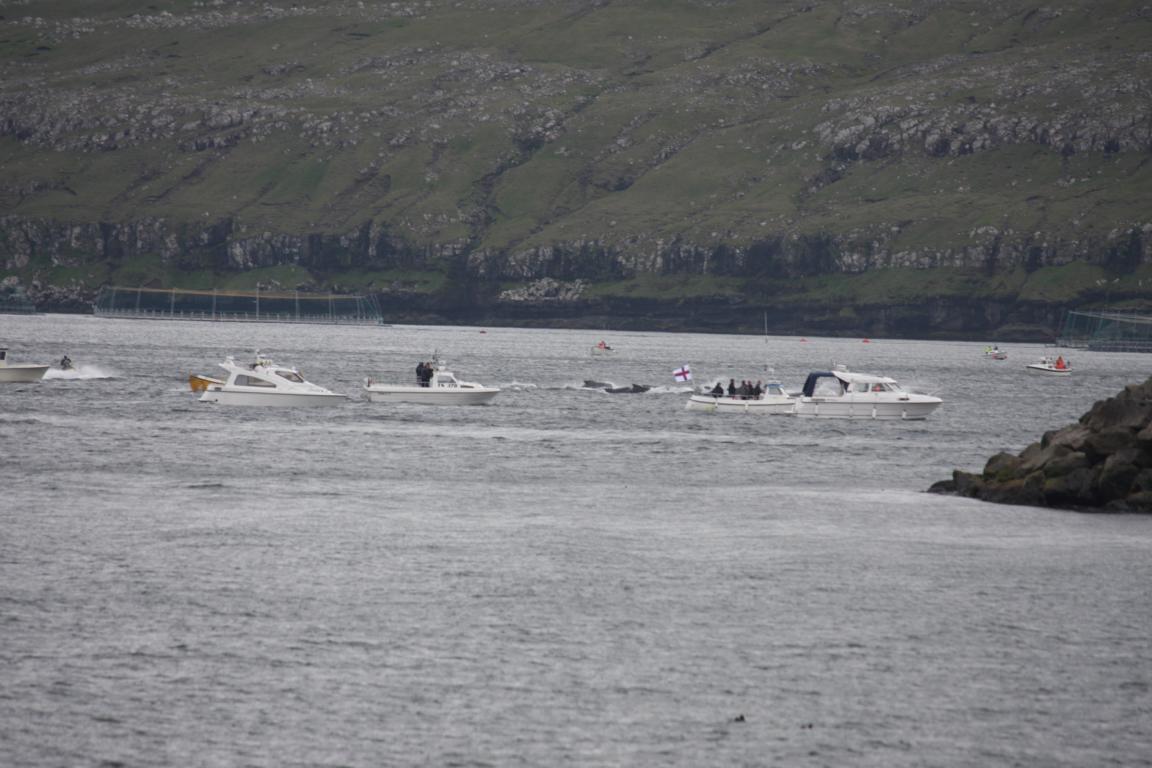 "Es ist stets Zufall, wenn eine Grindwalschule bei den Färöern gesichtet wird. Der entsprechende Skipper meldet dann die Sichtung. Die Behörden entscheiden im Anschluss darüber, ob See und Wetter einen Grindwalfang erlauben. Meist passiert das im Sommer, wenn die Bedingungen hierfür günstig sind. Dann wurde früher eine entsprechende Nachricht im nationalen Rundfunk durchgegeben. Die Mobiltelefonie ersetzt die Radio-Botschaft. Angestellte erhalten in der Regel frei, und es wird versucht, möglichst viele Boote des entsprechenden Ortes ins Wasser zu bringen. Es gibt auch Berichte davon, dass sogar Gottesdienste unterbrochen wurden, falls eine Grindwalsichtung just zu dieser Zeit passierte. Durch den Einsatz von Motorbooten ist es heutzutage einfacher, die Tiere einzukreisen und zu treiben; eine Grindwalschule kann leicht entkommen, wenn es nicht genügend Boote gibt, die sie zusammentreiben und in eine geeignete Bucht drängen, wo das Töten der Wale erlaubt ist.Einem Bericht des Nachrichtenmagazins Newsweek zufolge hat seit Mai 2015 derjenige mit umgerechnet rund 3.000 Euro Strafe – im Wiederholungsfall bis zu zwei Jahren Haft – zu rechnen, der es versäumt, die Sichtung einer Grindwalschule den zuständigen Behörden anzuzeigen." Zitat von hier: https://de.m.wikipedia.org/wiki/Grindadr%C3%A1p