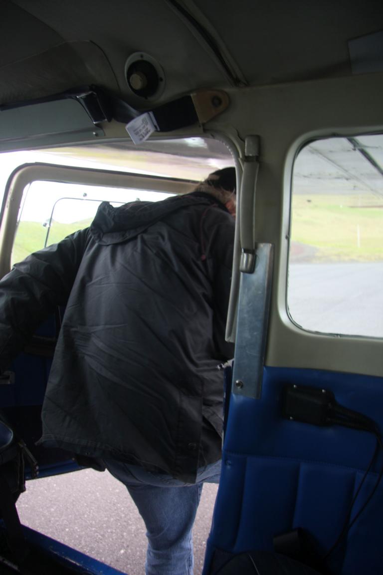 Um 15.45 Uhr kommt unser "Privatflieger" angeflogen. Der Pilot steigt aus und holt uns aus dem gebäude ab. Okke fliegt mit einer anderen Maschine direkt nach Reykjavik.