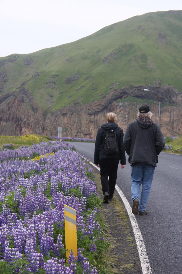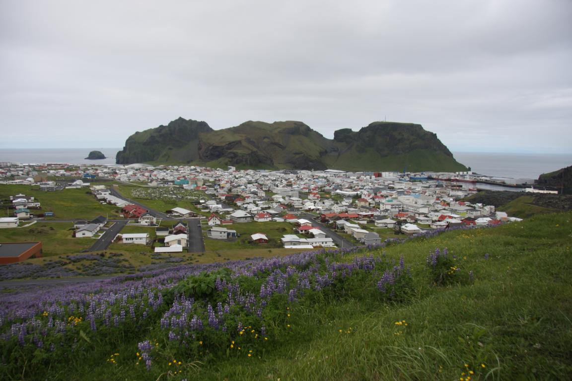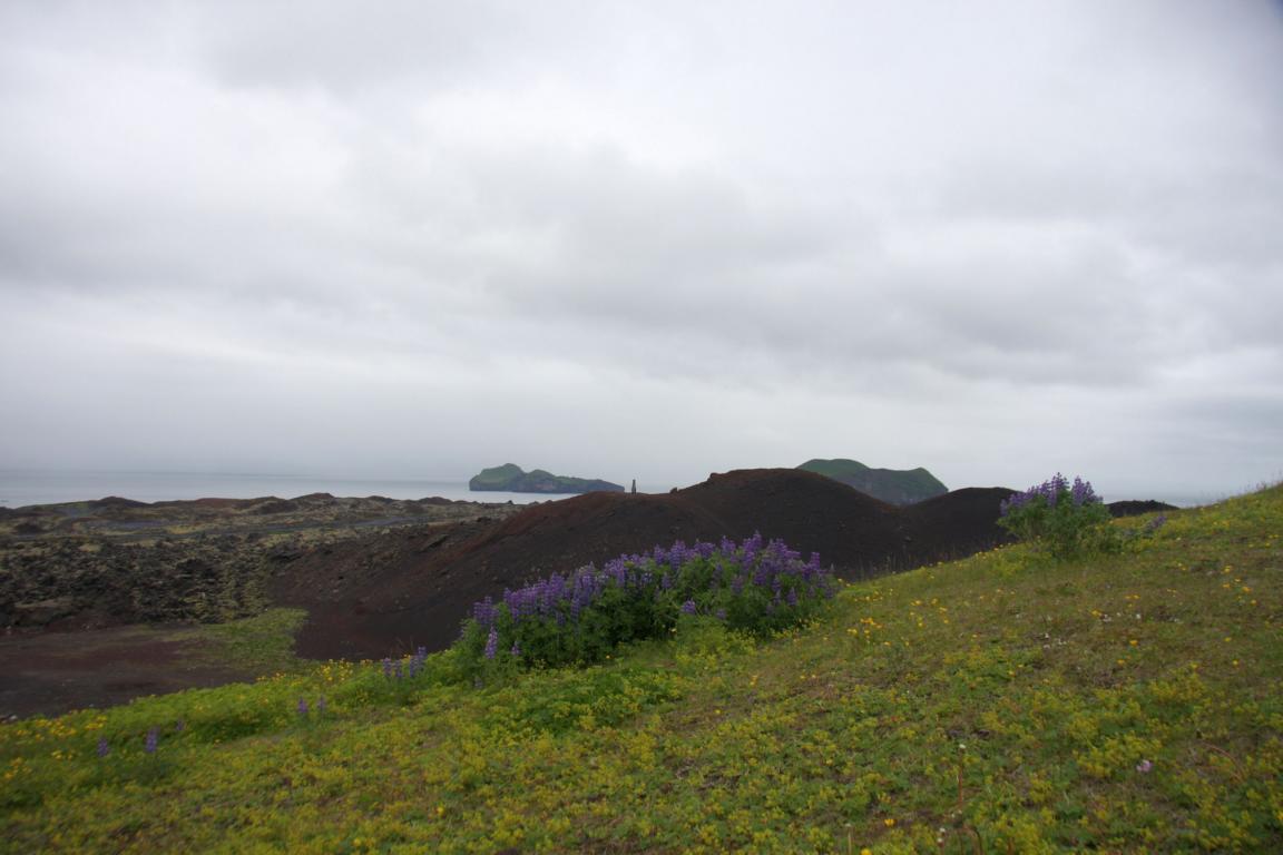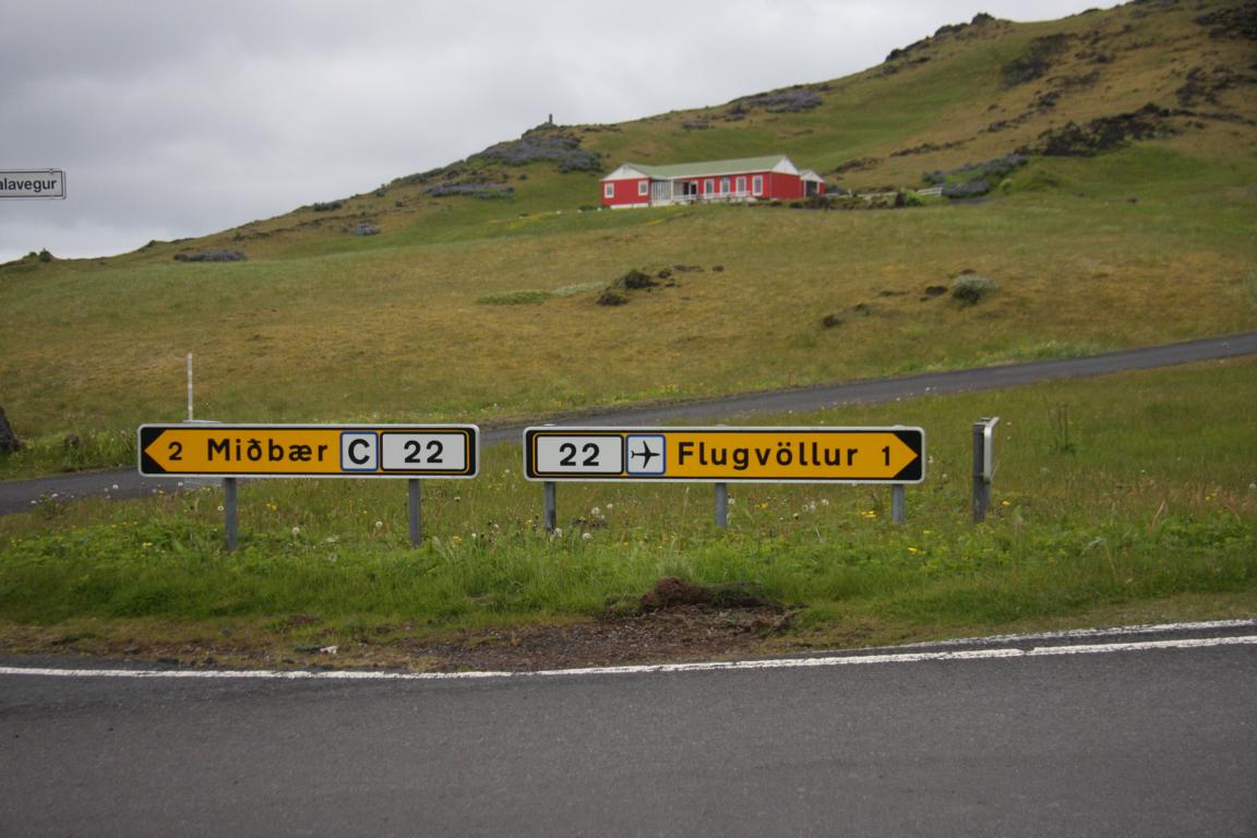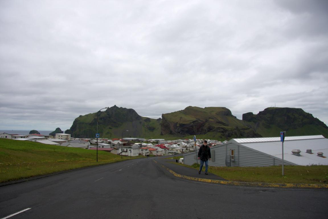 Wir befinden uns auf der Insel Heimaey und hier brach 1973 der Vulkan Eldfell, in direkter Nähe des Hauptortes aus. Und zu dem wollen wir, und Okke und ich auch rauf an den Kraterrand. Dies bedeutet zunächst ca. 2-3 km die Straße entlang marschieren - bergauf.