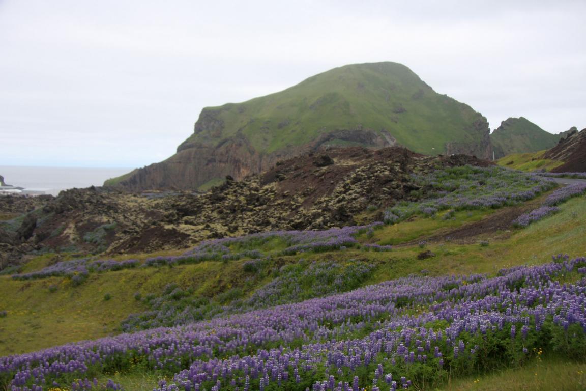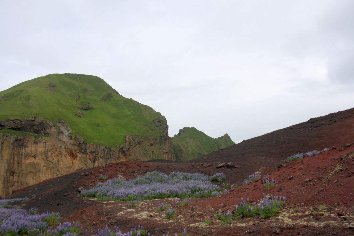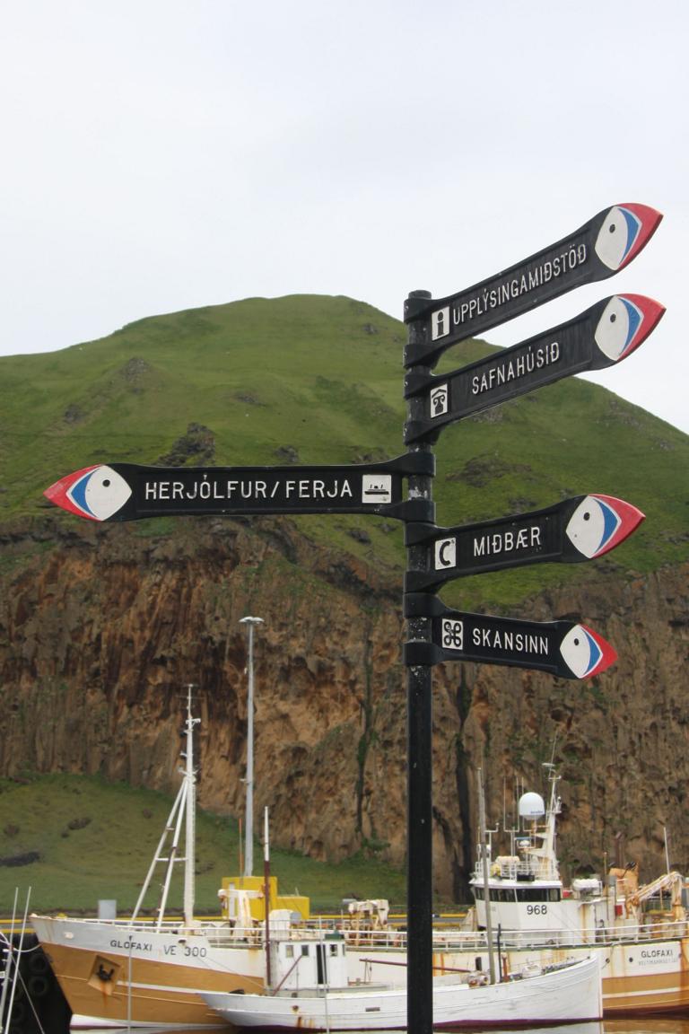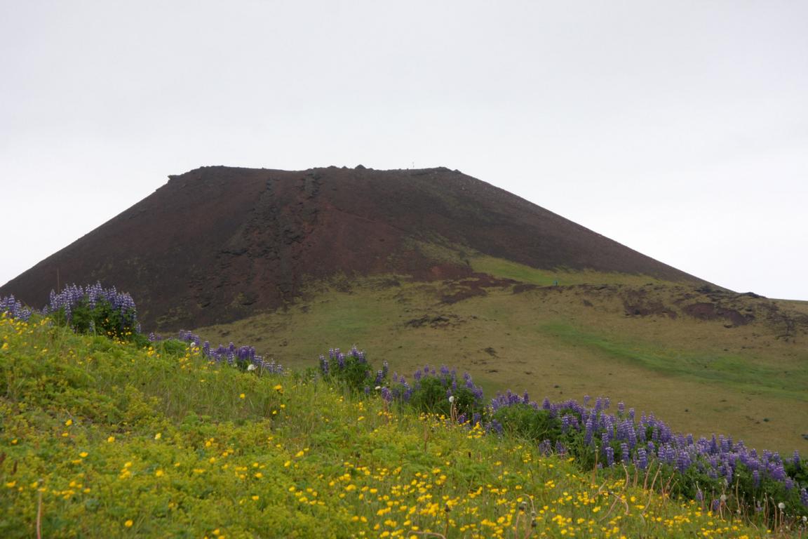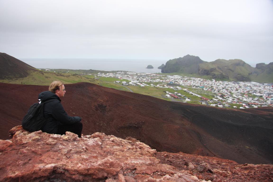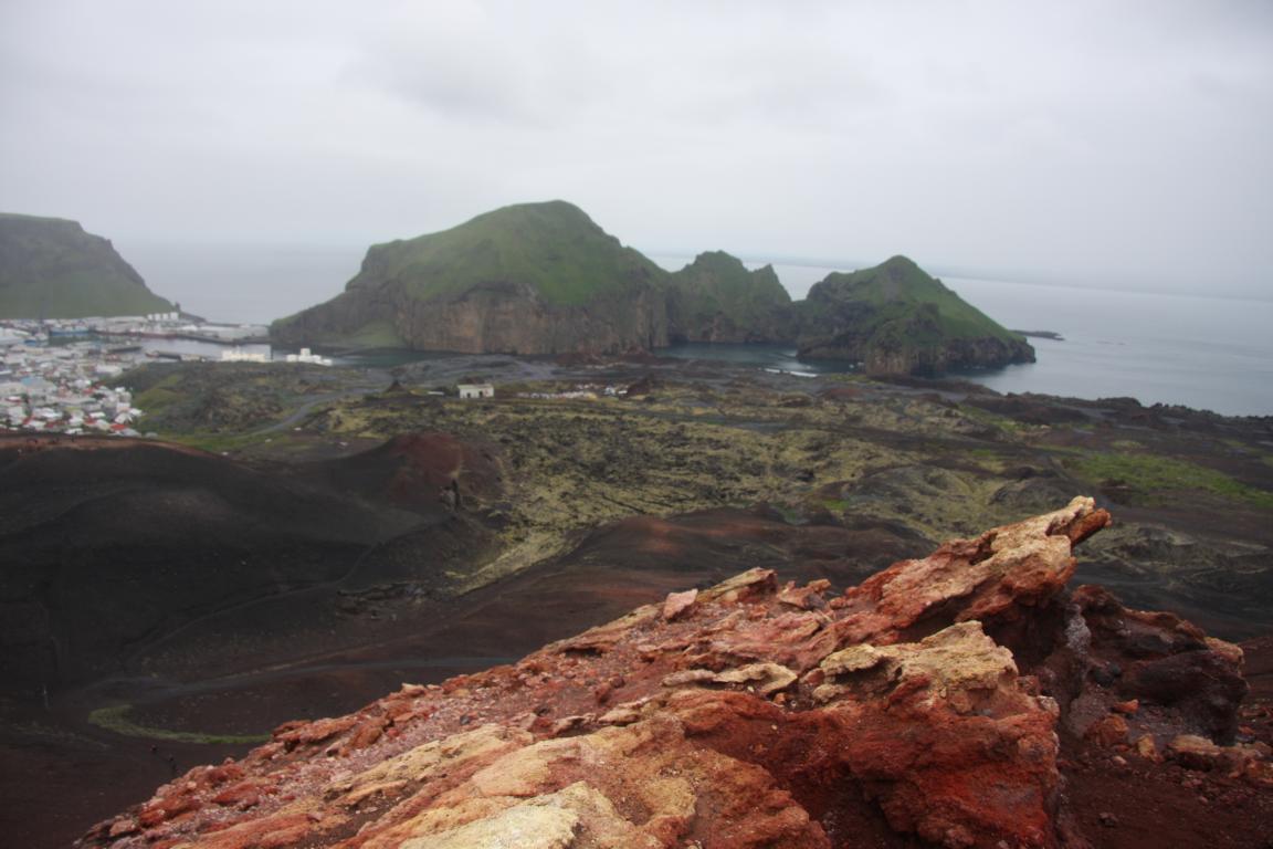 Wir befinden uns auf der Insel Heimaey und hier brach 1973 der Vulkan Eldfell, in direkter Nähe des Hauptortes aus. Und zu dem wollen wir, und Okke und ich auch rauf an den Kraterrand. Dies bedeutet zunächst ca. 2-3 km die Straße entlang marschieren - bergauf.