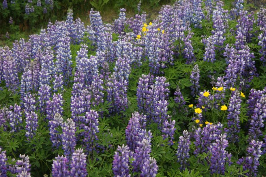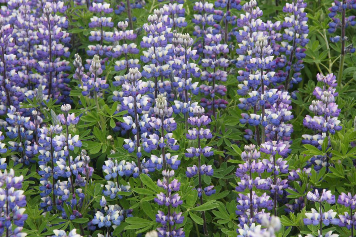 Wenn schon keine Sonne, so komme ich jetzt doch in den Genuß entlang von Lupinenfeldern zu laufen und sogar mitten durch eines hindurch