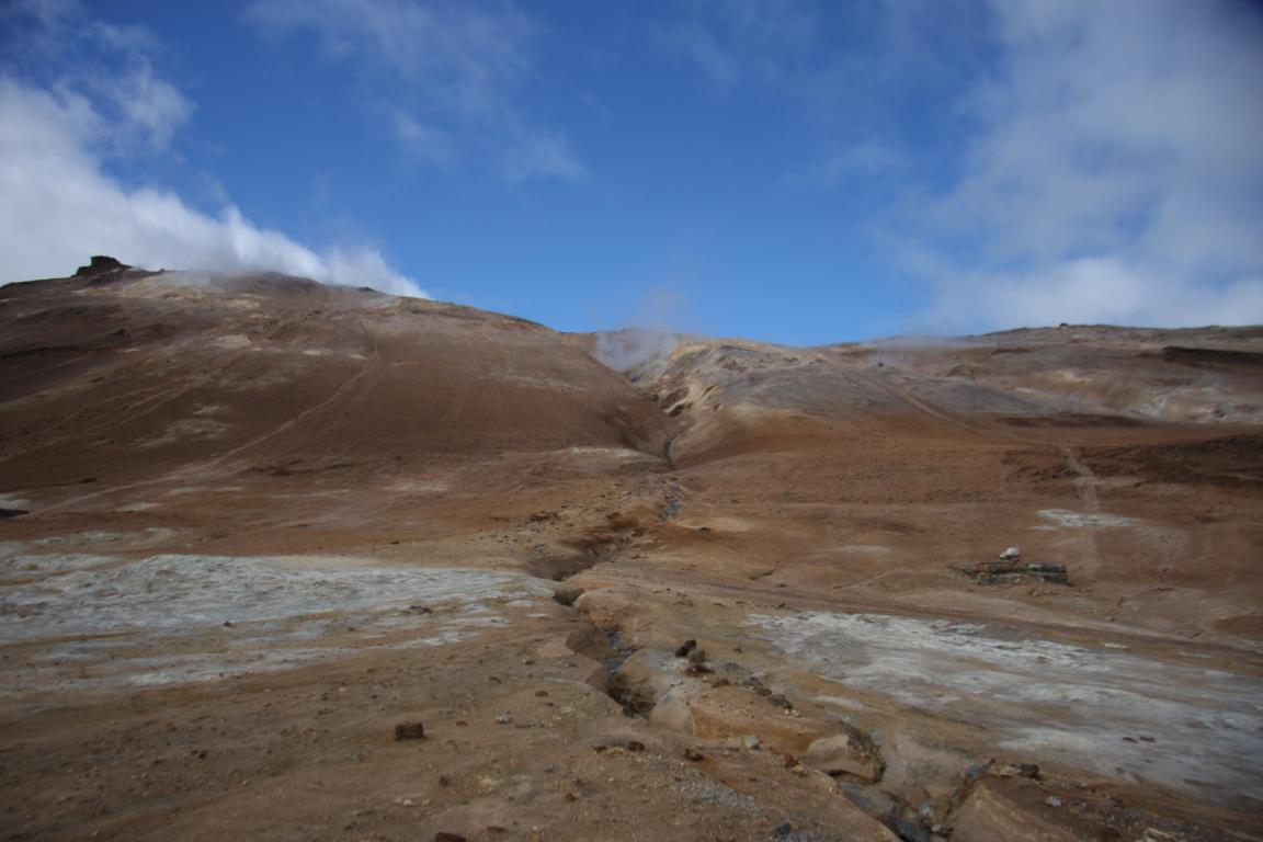 Nun geht es in die entgegengesetzte Richtung, Richtung Egilsstadir, und dann biegen wir links ab in die 863 am Kraftwerk Krafla vorbei, denn dahinter findet sich ein weiterer blauer See