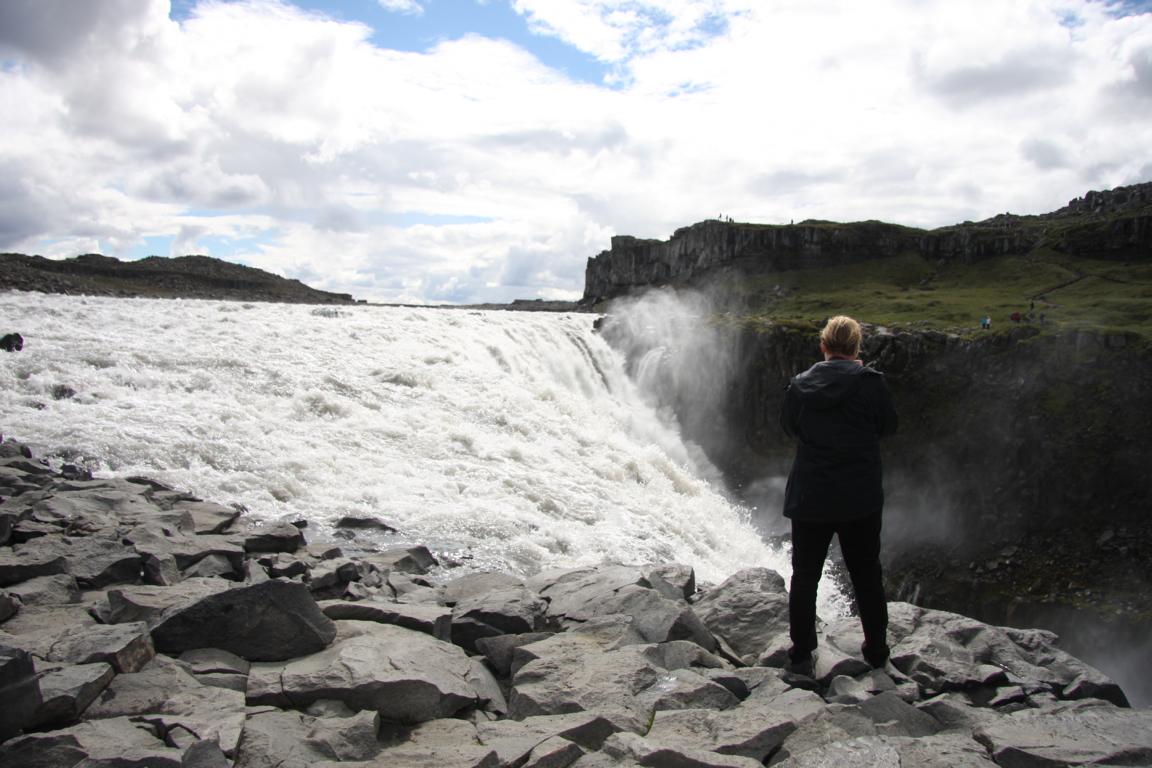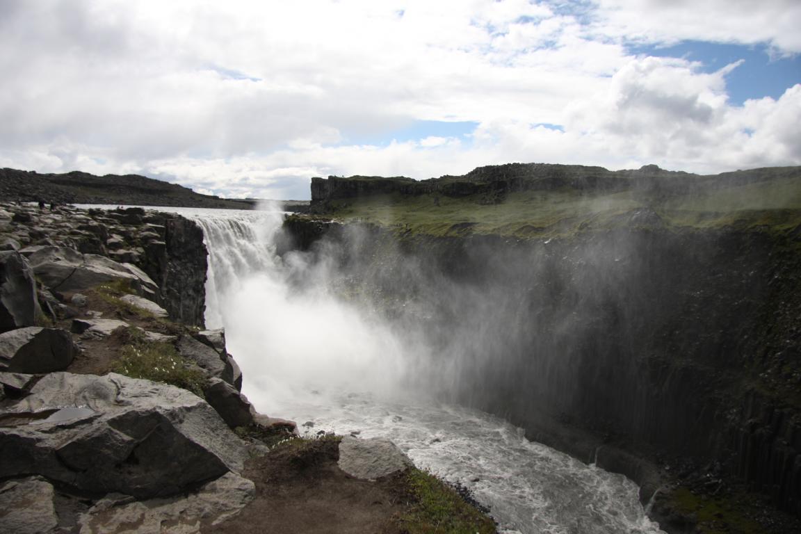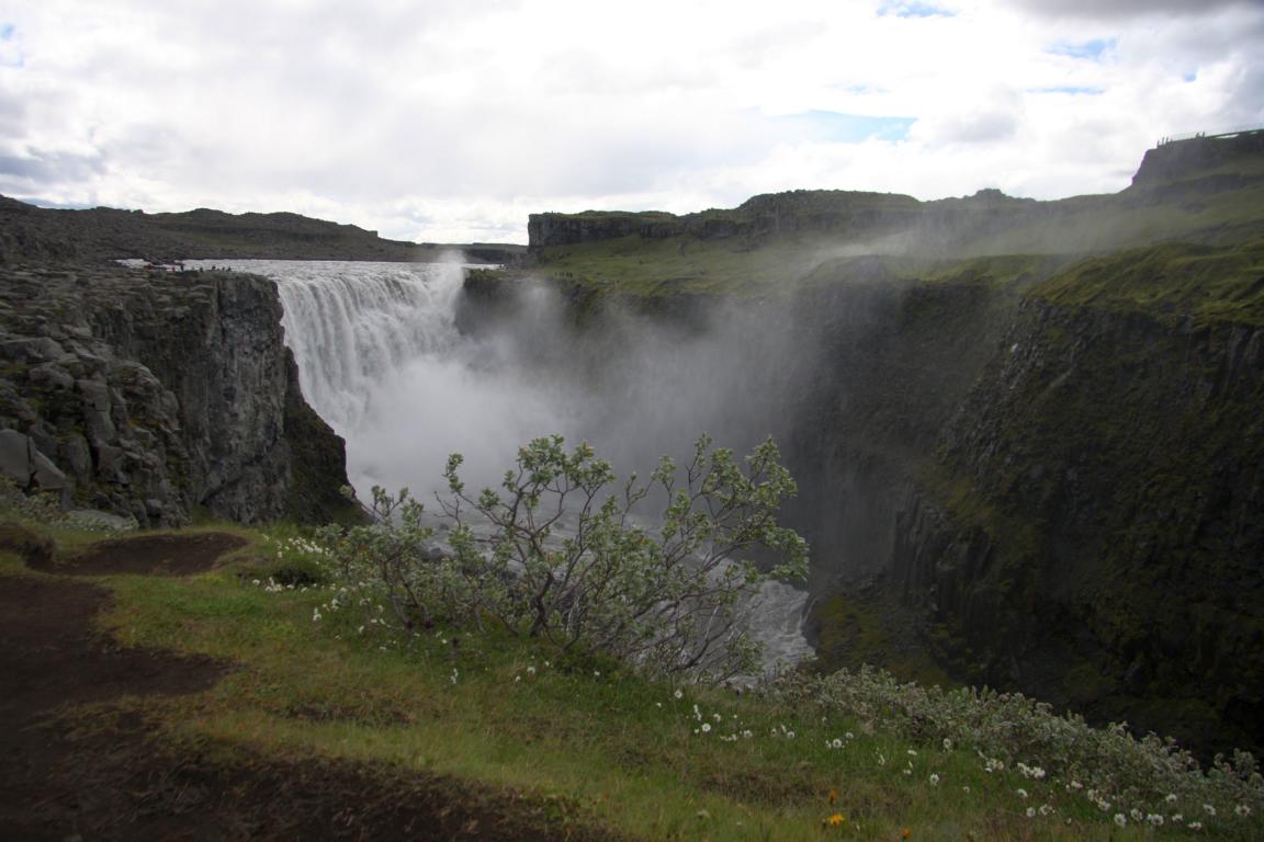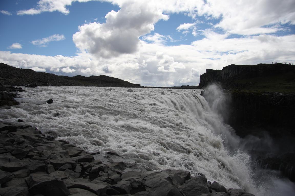 Der Dettifoss ist der größte Wasserfall im Nordosten Islands . Angesichts der Masse des Wassers und der Höhe, 44m, durch die Kombination aus Volumenfluss und Fallhöhe, ist er der leistungsstärkste Wasserfall Europas.