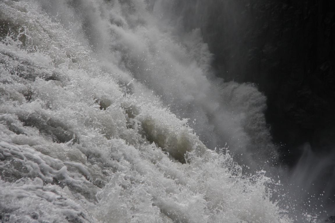Die Wassermassen stürzen auf einer Breite von 100 m 44 m in die Tiefe. Das gibt ein gewaltiges Tosen. Und dichter dran ist mir wirklich schon etwas mulmig
