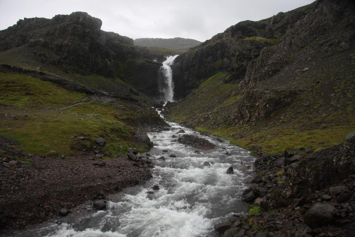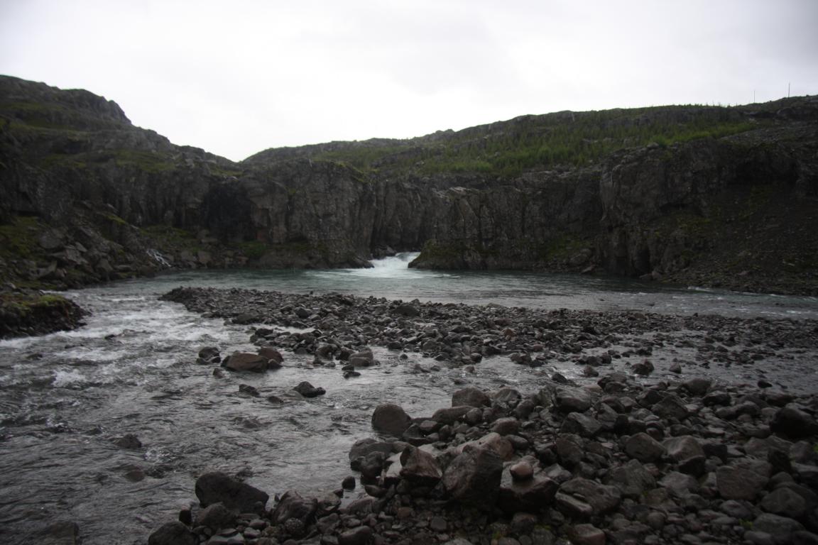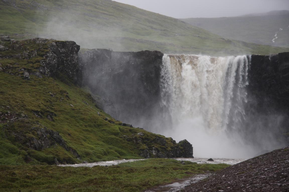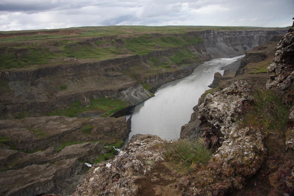 Man kommt zwar nicht ohne Wanderung direkt an den Wasserfall, hat aber nach nur kurzer Wegstrecke vom Canyonrand einen Blick auf den Hafragilsfoss