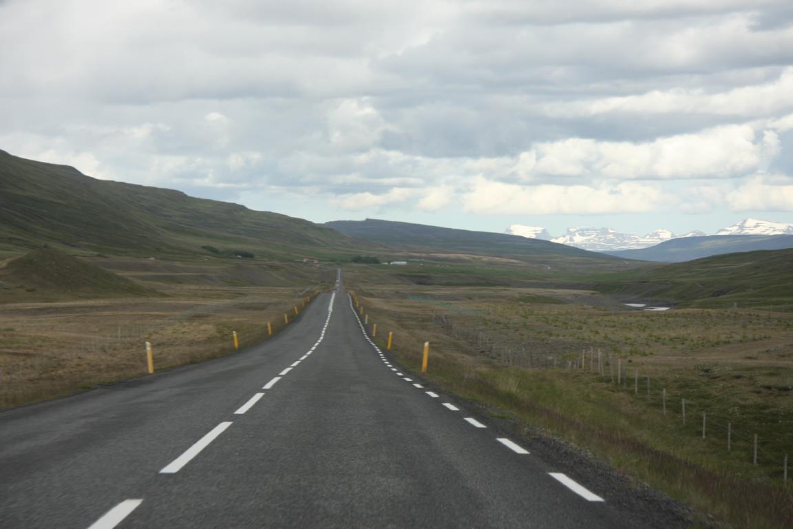 Wir fahren jetzt weiter die Straße Richtung Egilsstadir. Hier ist es wenig bergig und es sind Unmengen von Radfahrern unterwegs.... oder besser gesagt, Unmengen von Begleitfahrzeugen mit Radfahrern. Vorneweg fahren 1, 2 oder auch mal 3 Radfahrer, dahinter diverese Autos. Weder Radfahrer noch Begleitfahrzeuge scheinen zu bemerken, dass auch andere Verkehrsteilnehmer auf der Szraße fahren. Da wird einfach an Stellen angehalten und Räder getauscht, wo auf der Straße eine durchgezogene Linie ist, man also nicht überholen soll (weil gefährlich). Oder die Radfahrer fahren mal eben auf der Überholspur und nebeneinander. Wir haben etliche solcher Gefährte binnen kürzester Zeit überholt. Die Fahrzeuge haben Schilder mit Nummern - ich konnte aber nicht herausfinden, ob es sich hier um einen Wettstreit handelt.