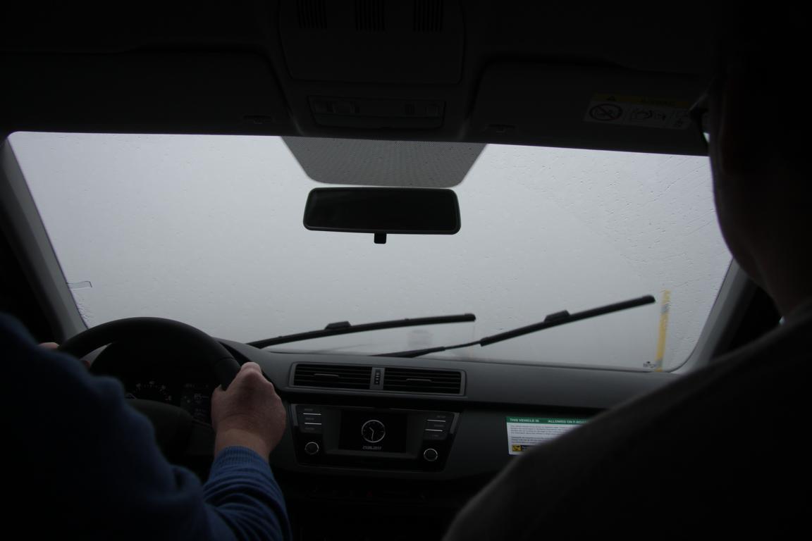 Es ist unangenehm, das Auto zu packen, denn der Regen prasselt nur so auf uns herab und dazu weht ein kräftiger WInd.