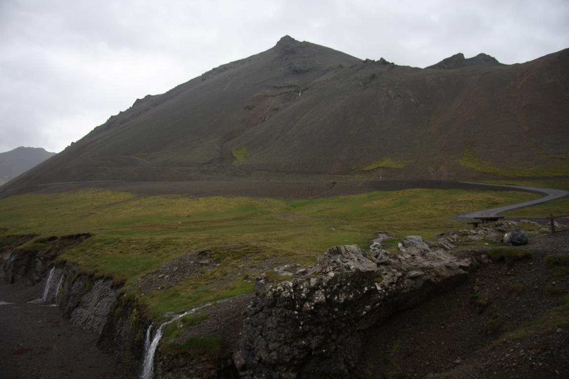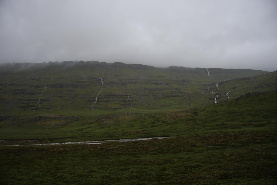 Rechts und links neben der Straße konnte man erahnen, dass es hier bei gutem Wetter toll ausehen muss. Überall kleine Seen und Wasserfälle.