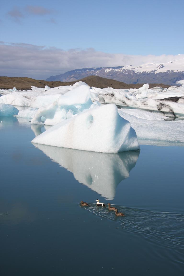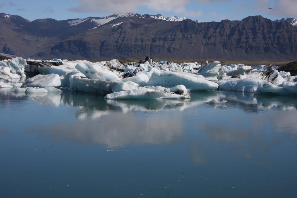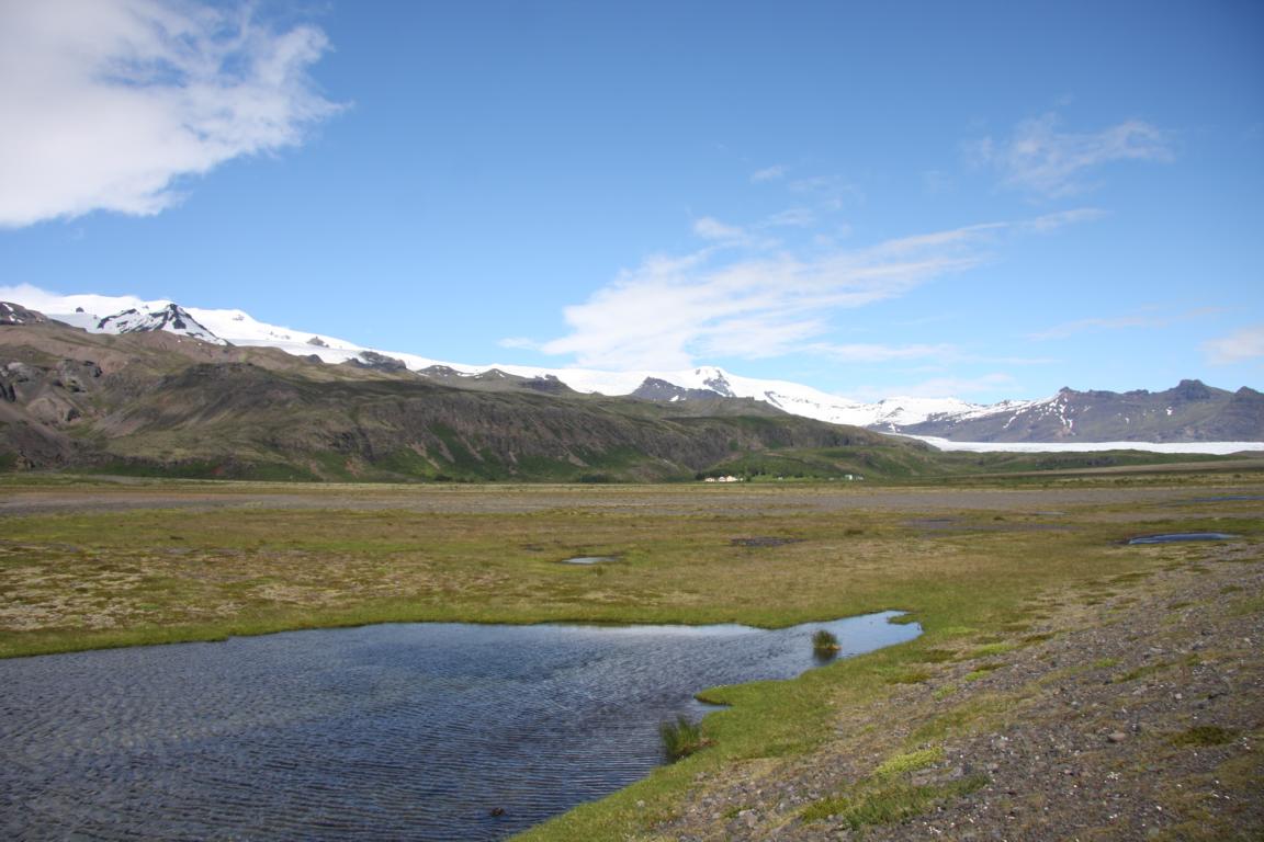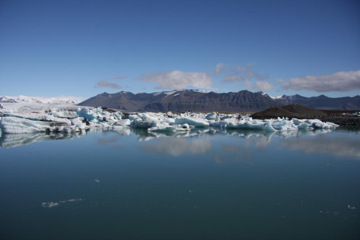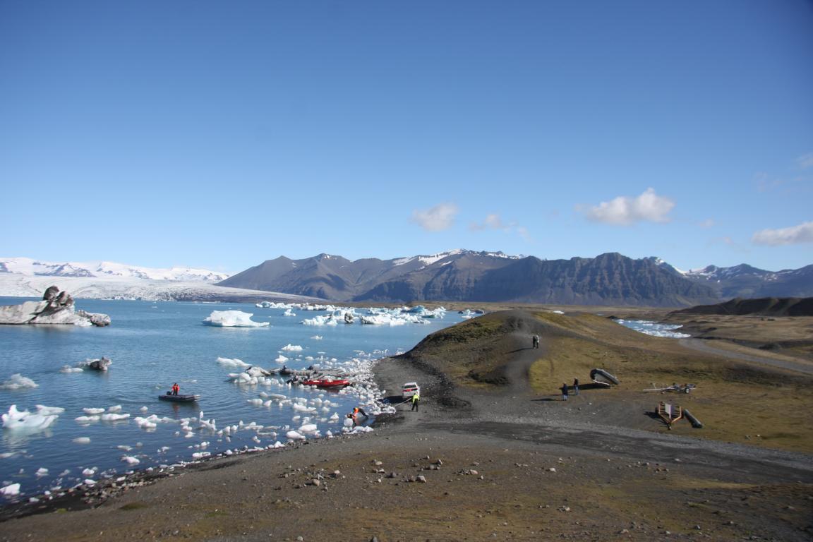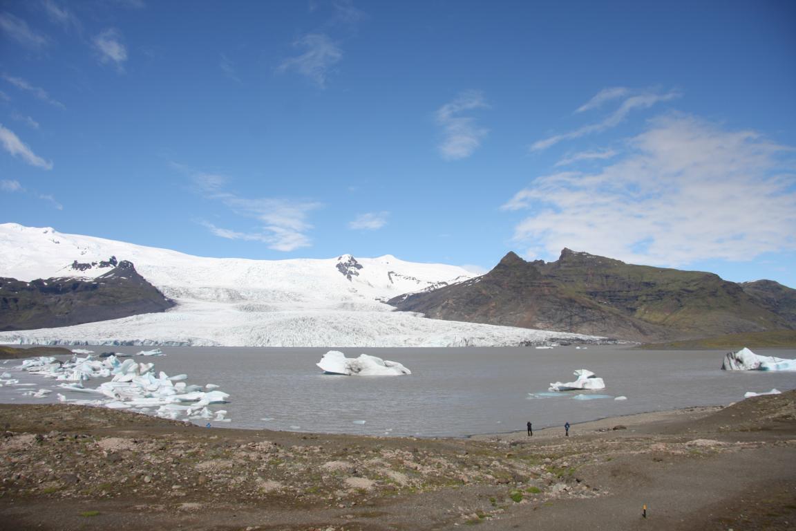 Zunächst allerdings nur ein kleines Stück. Kurz hinter dem Gletschersee Jökulsárlón kommt eine weitere Gletscherzunge herunter und auch dort gibt es einen See. Hier hätte man übrigens für 6800 ISK pro Person mit einem Zodiakboot fahren können