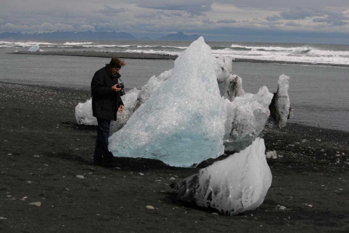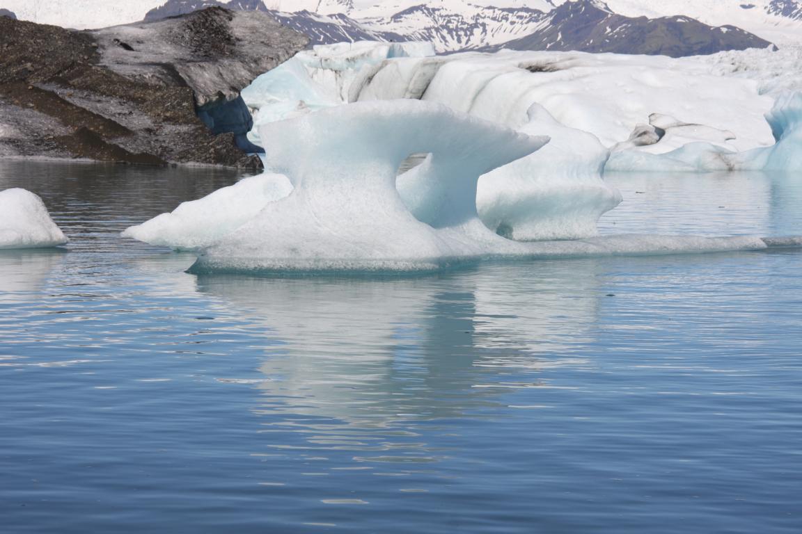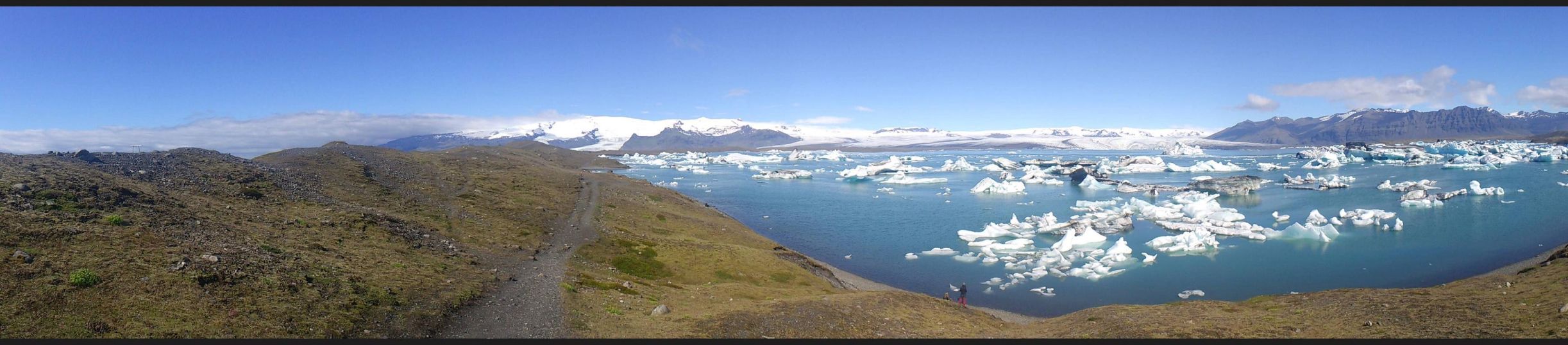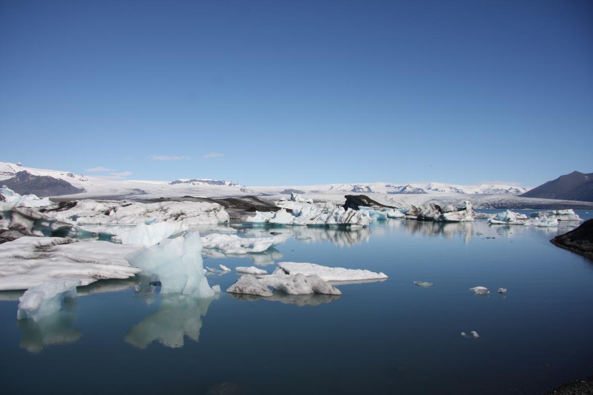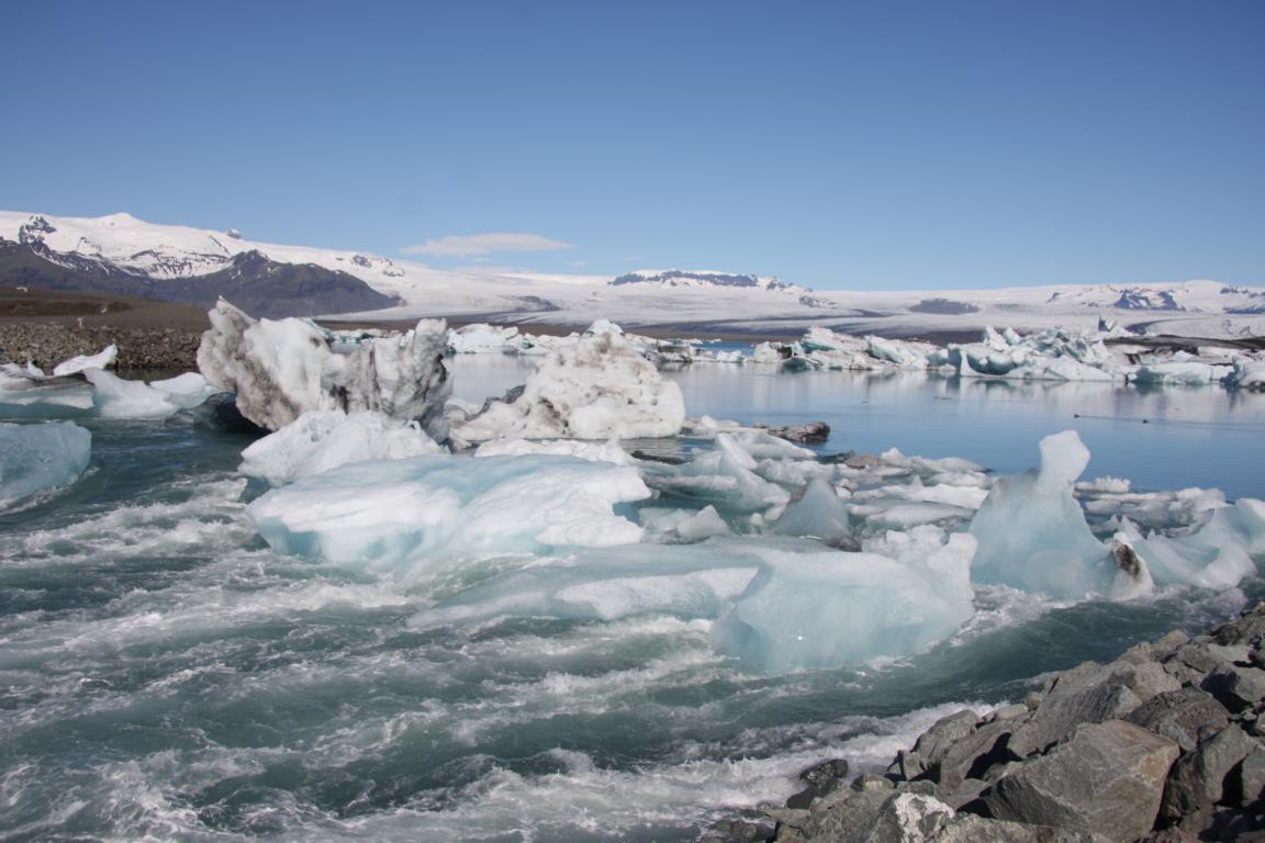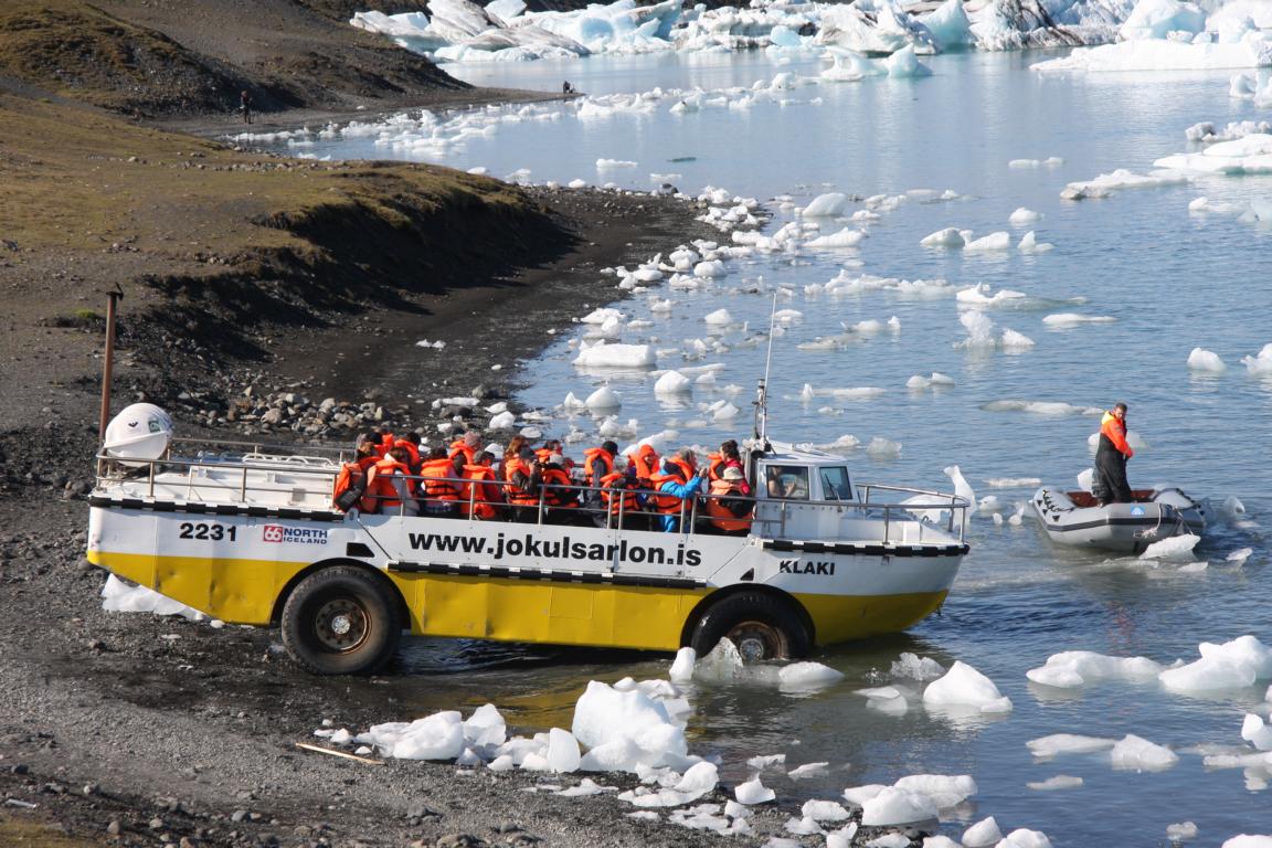 Zunächst allerdings nur ein kleines Stück. Kurz hinter dem Gletschersee Jökulsárlón kommt eine weitere Gletscherzunge herunter und auch dort gibt es einen See. Hier hätte man übrigens für 6800 ISK pro Person mit einem Zodiakboot fahren können