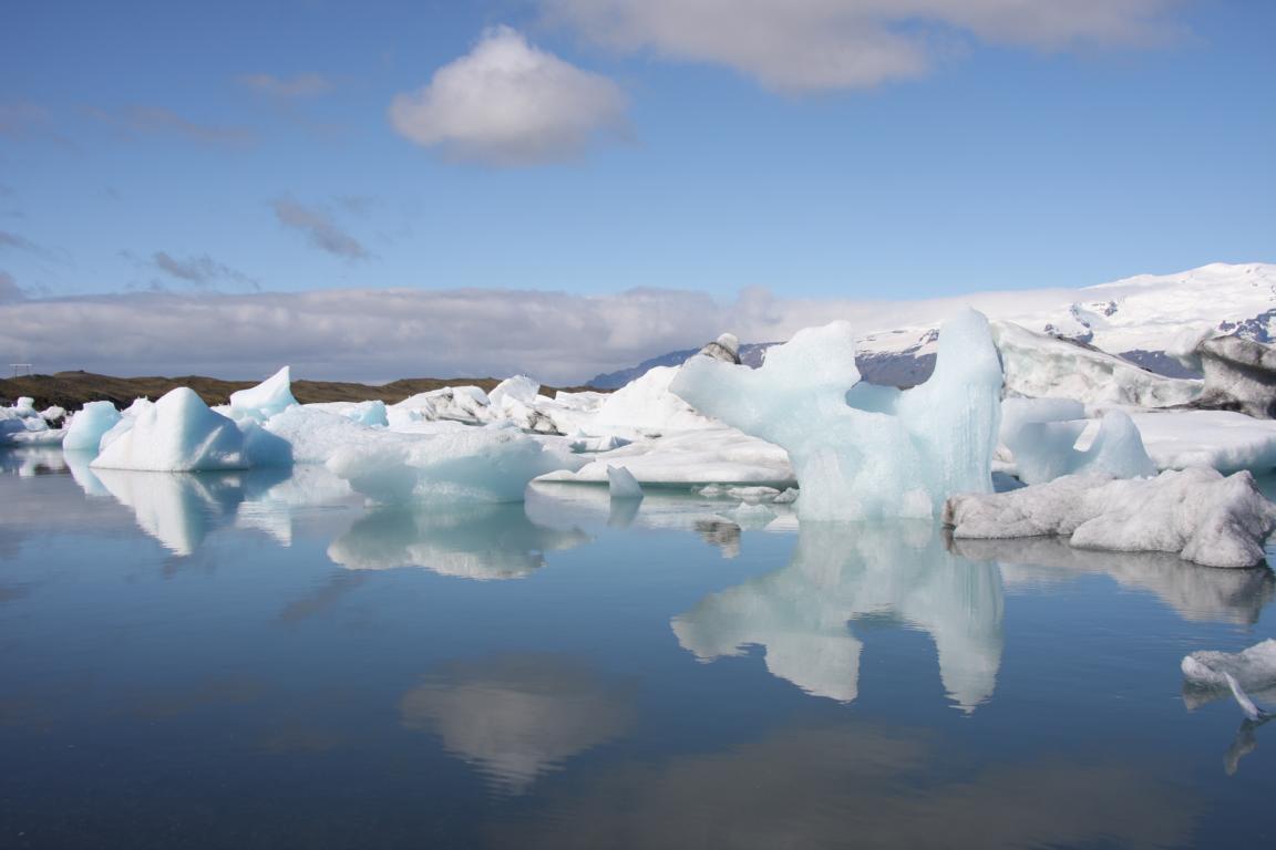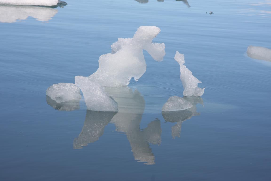 Heute lässt es sich ohne zweiten Pullover und Regenhose aushalten. Es ist nahezu windstill und angenehm von der Temperatur. Und die Eisberge spiegeln sich jetzt im Wasser