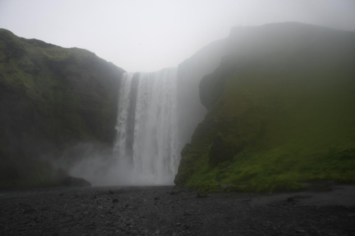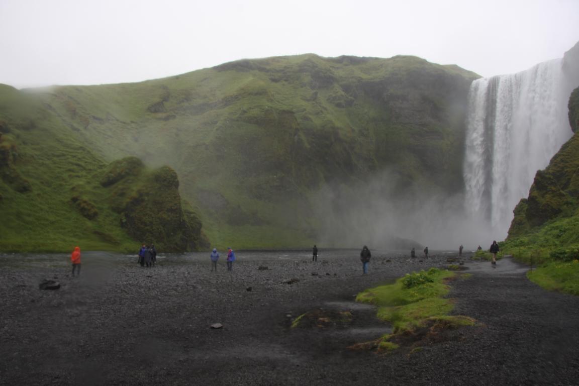 Wir kommen an einem der spektakulären Wasserfälle vorbei. Ich habe gerade den Namen vergessen. Hier regnet es wieder kräftiger. Man kann links am Wasserfall eine Treppe hochlaufen. 2008 ging das nur zur Hälfte, den Rest musste man irgendwie hochkrabbeln und stand dann gefährlich auf der Graskante am Rand des Wasserfalles. Fotos gibt es im Reisebericht 2008. Jetzt gibt es eine ganze Treppe und eine Plattform. Hilft alles nicht bei dem Regen. Und wir laufen da jetzt nicht hoch.