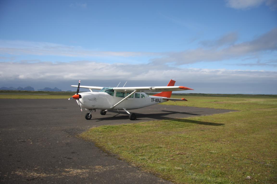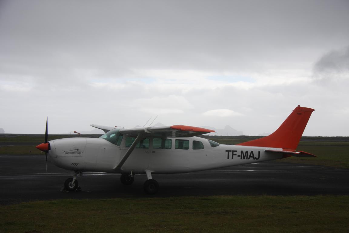 Wir nähern uns der heutigen Unterkunft und fahren zuvor noch an dem Flughafen vorbei, von dem wir morgen auf die Westmänner Inseln fahren. Ob es dieser Flieger wird? -