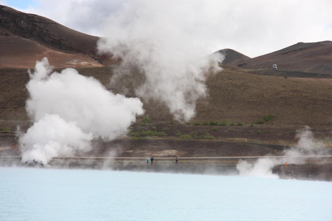Überall dampft und brodelt es - in der Nähe ist auch das Schwefelbad beim Myvatn. Da auch dieses einen sündhaft teuren Eintritt kostet, entscheiden wir uns gegen einen Besuch -