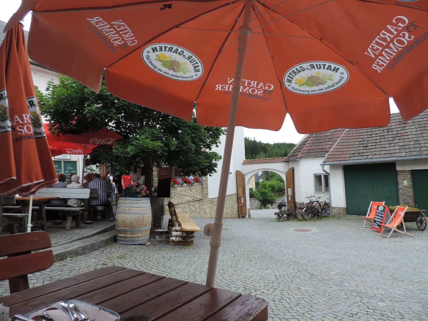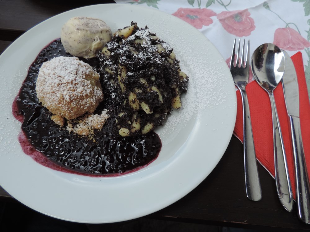 Eine süsse Katze versteckte sich im Gras, der Mohnwirt hatte ebenfalls herrliche Blumen und wir asen ein Mohnpoutpurri , welches aus einem Mohnknödel, Mohnnudeln, Mohneis und Hollerrrester besteht und herrlich schmeckt,. (Ich ess das schon seit 3 Jahren immer wenn wir hinkommen.