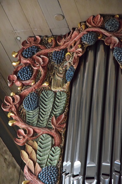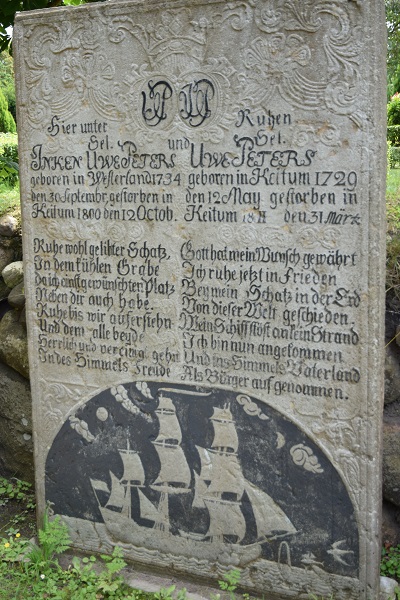 In der Kirche gibt es eine schöne Orgel (Bild 1), interessante Türklinken (Bild 2,3) und auf dem dazu gehörigen Friedhof alte Kapitänsgrabsteine (Bild 4)