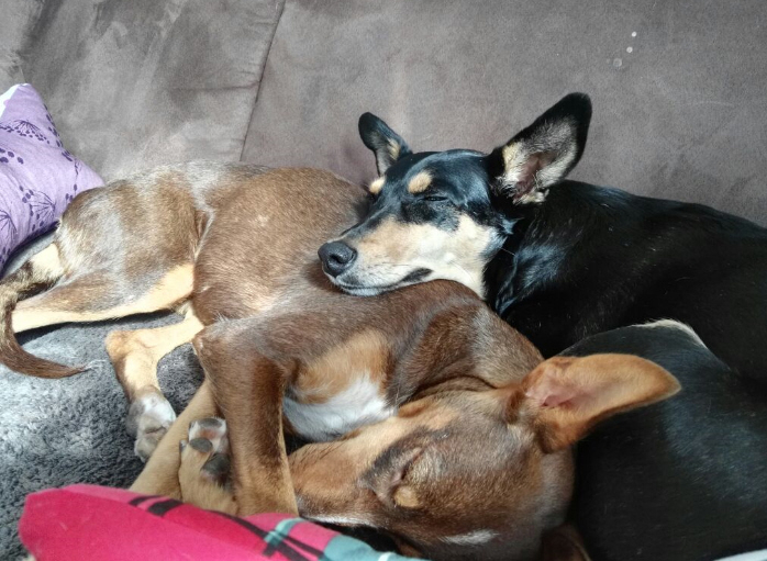 Benita ist noch nicht soo 100%ig begeistert, aber sie akzeptiert sie und ich bin mir sicher, dass sie sich schnell dran gewöhnt, v. a wenn sie so angehimmelt wird von Mia. Die robbt sich auf der Couch immer zu ihr hin, um ihr nah zu sein. ![]()