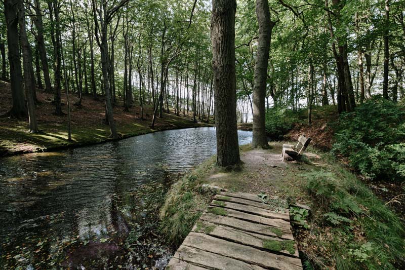 Der Waldpark wurde so um 1920 angelegt, auch das dazugehörige Gutshaus existiert noch. Ein kleiner Weg führt am Bodden entlang über eine kleine Steilküste, bevor man dann in den Park gelangt.
