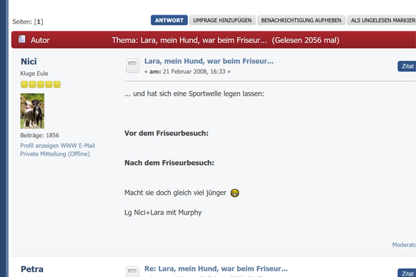 Ich überlege auch, ob ich für die Umstellung, dieses alte Forum zum Lesen online lasse, man kann dann zwar nicht schreiben, aber eben noch lesen, oder ich lasse es normal laufen und das, was wir in der Zeit schreiben, wird NICHT im neuen Forum übernommen. Irgendwann müssten wir ja einen Schnitt machen und die Daten übertragen.