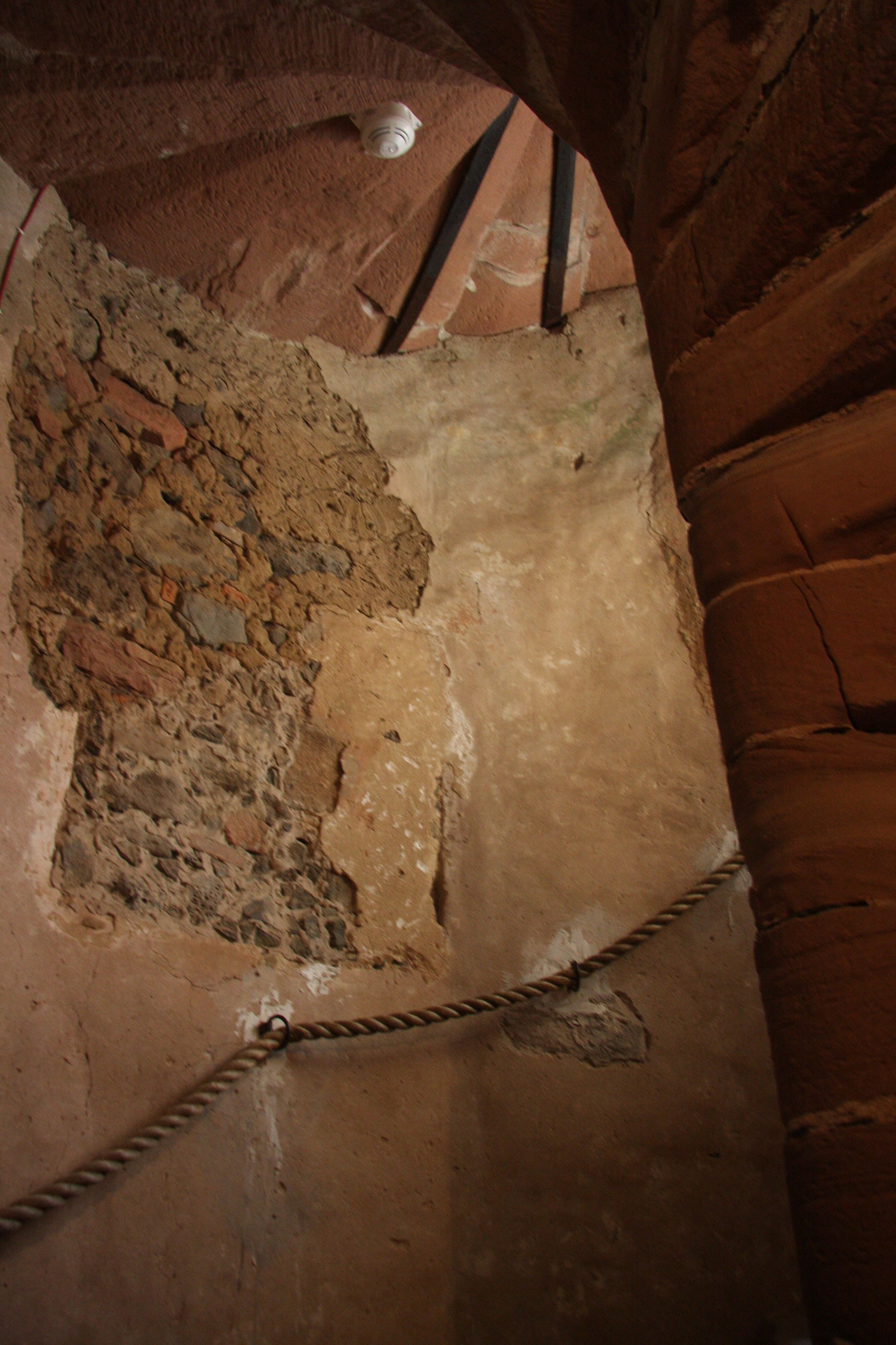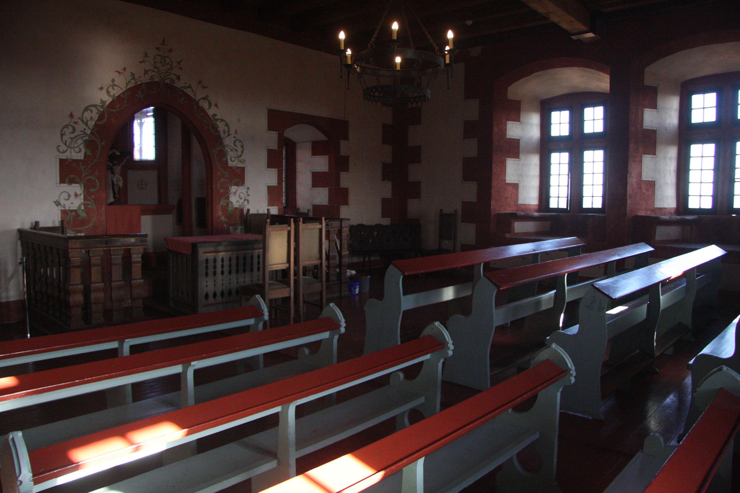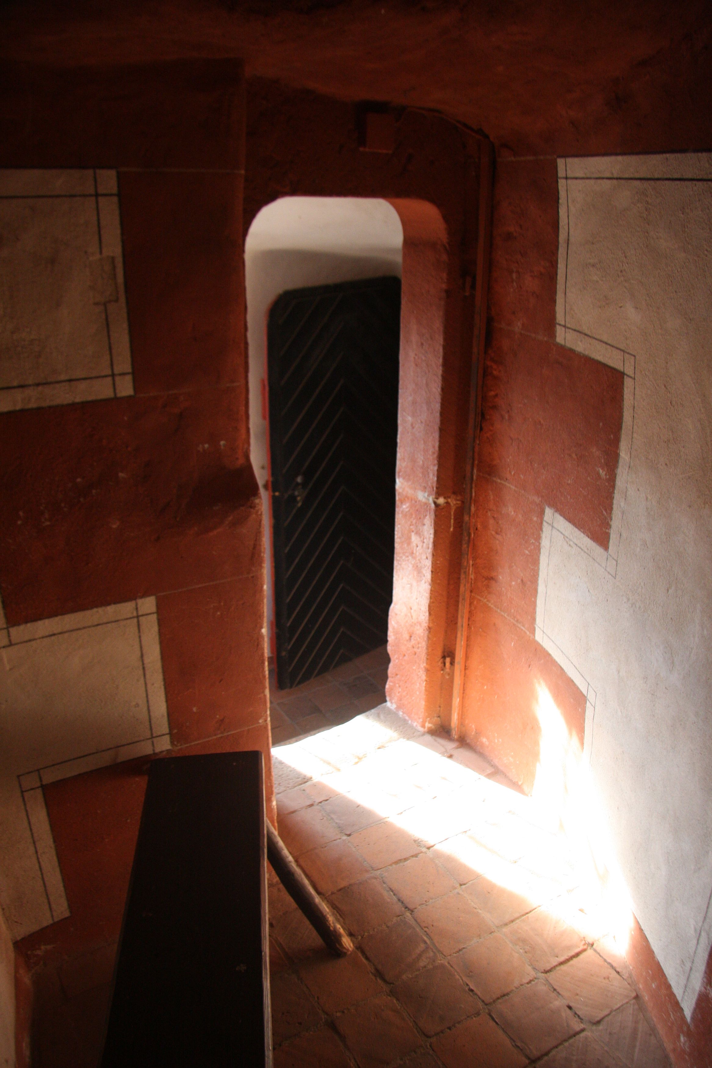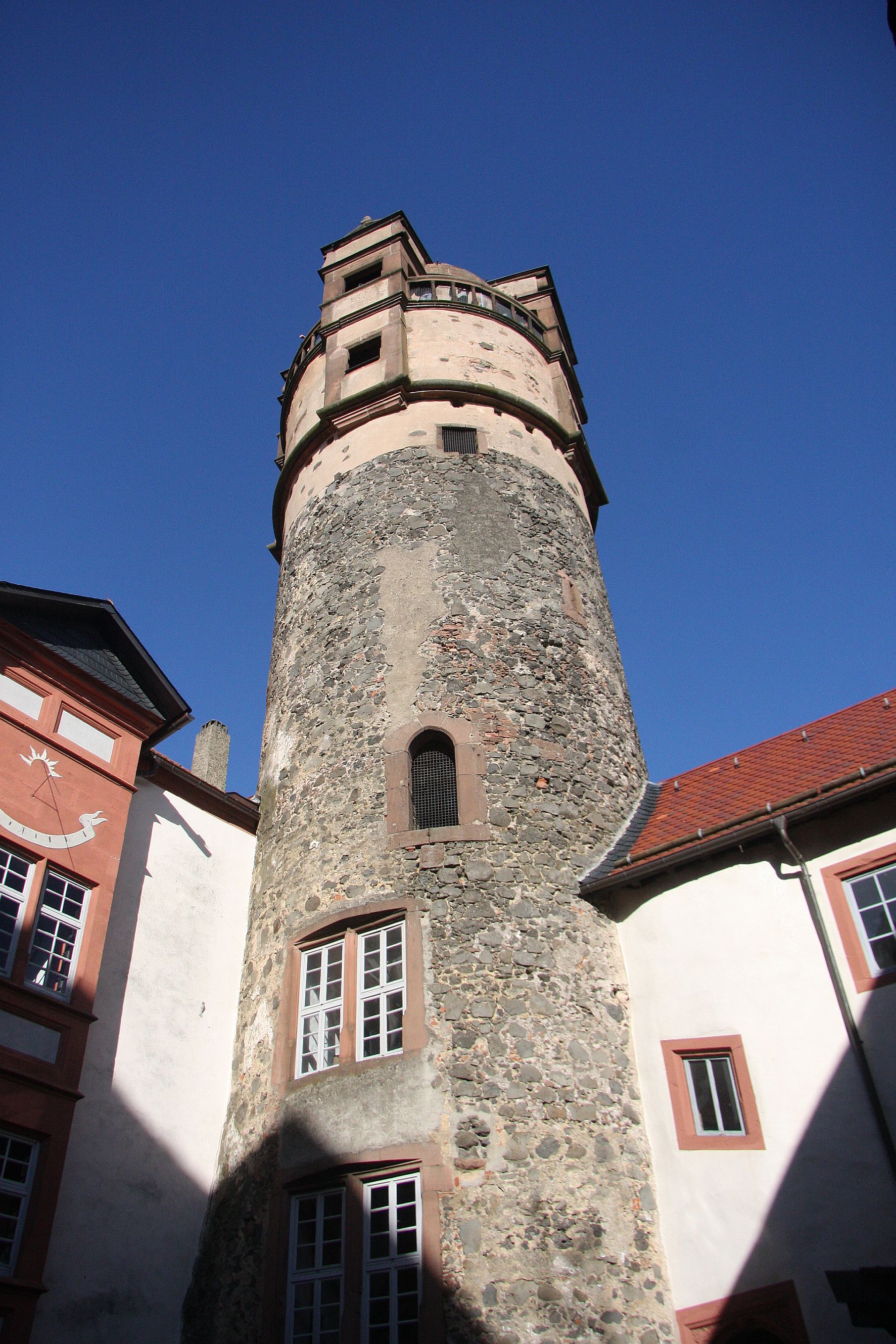 Der Bergfried hat eine „Welschen Haube“ . Dass soll eine Besonderheit in der Region sein. Er ist 32 Meter hoch und hat einen runden Durchmesser von 8 m.