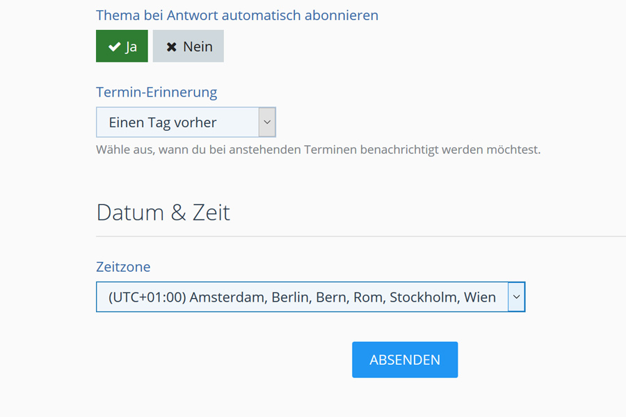 Die persönliche Zeitzone könnt Ihr hier einstellen oder ändern: