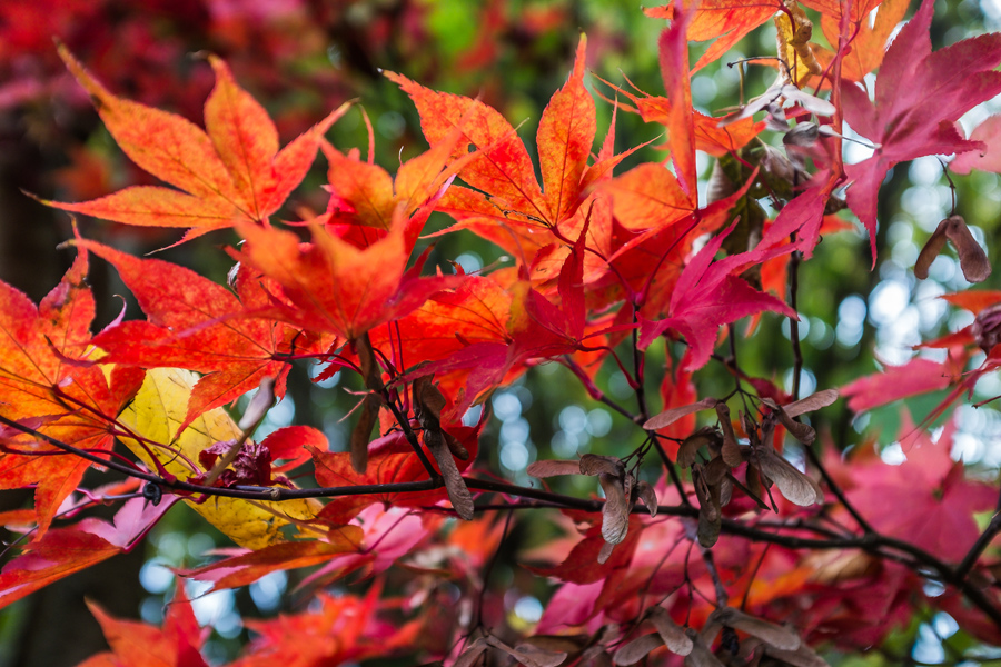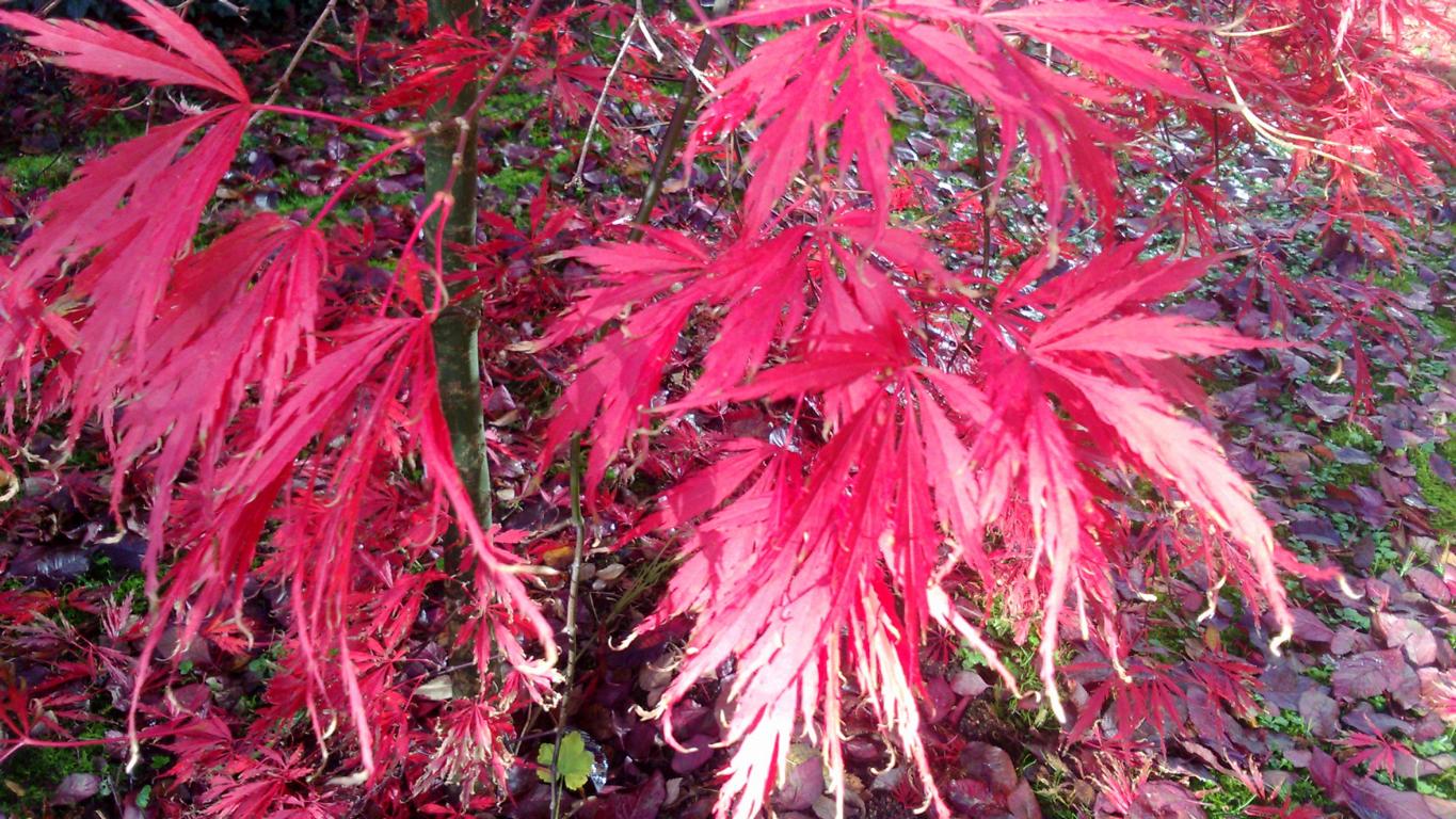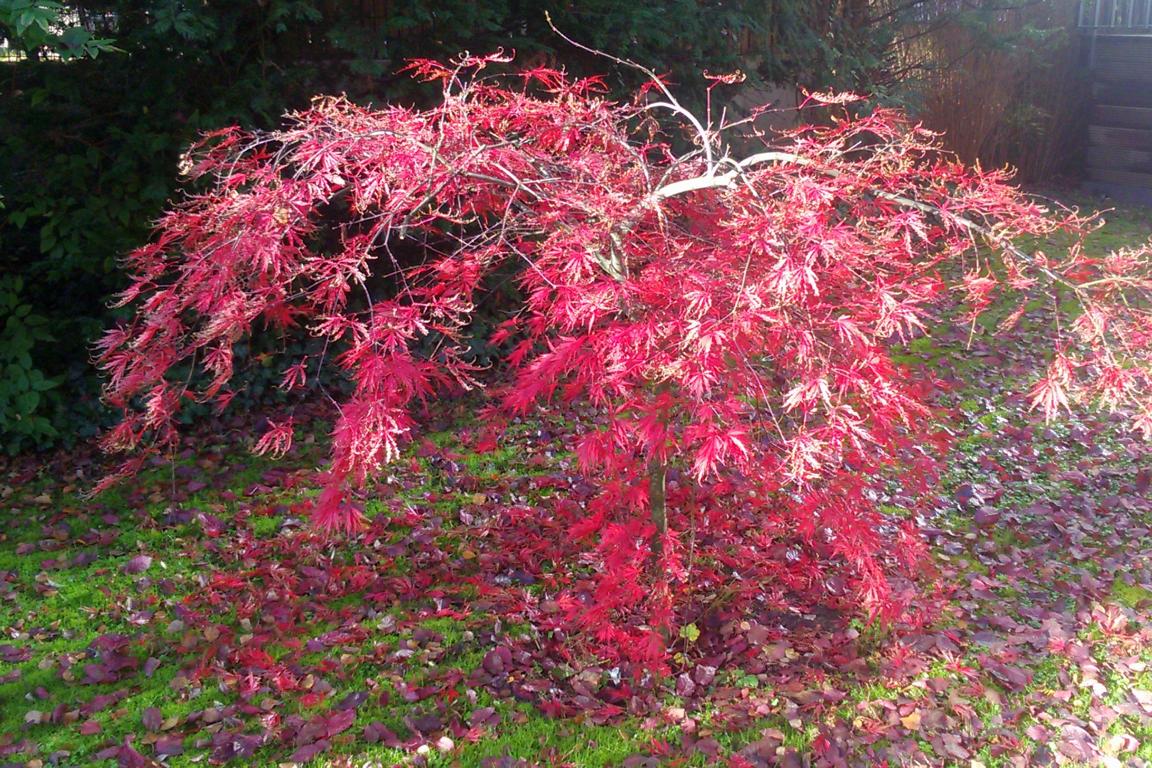 Roter Fächerahorn - haben wir auch im Garten und er hat immer rote Blätter, im Herbst sind sie aber besonders schön. Und ansonsten steht da noch ein Baum mit roten Blättern im Garten, keine Ahnung was das ist