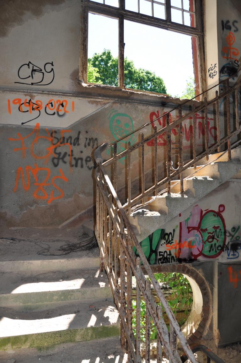 Interessanterweise ist das Gebäude nicht eingezäunt, sondern frei zugänglich - Aber Vorsicht, wohin man tritt, denn hier lauern schon ab und an mal klaffende Löcher.