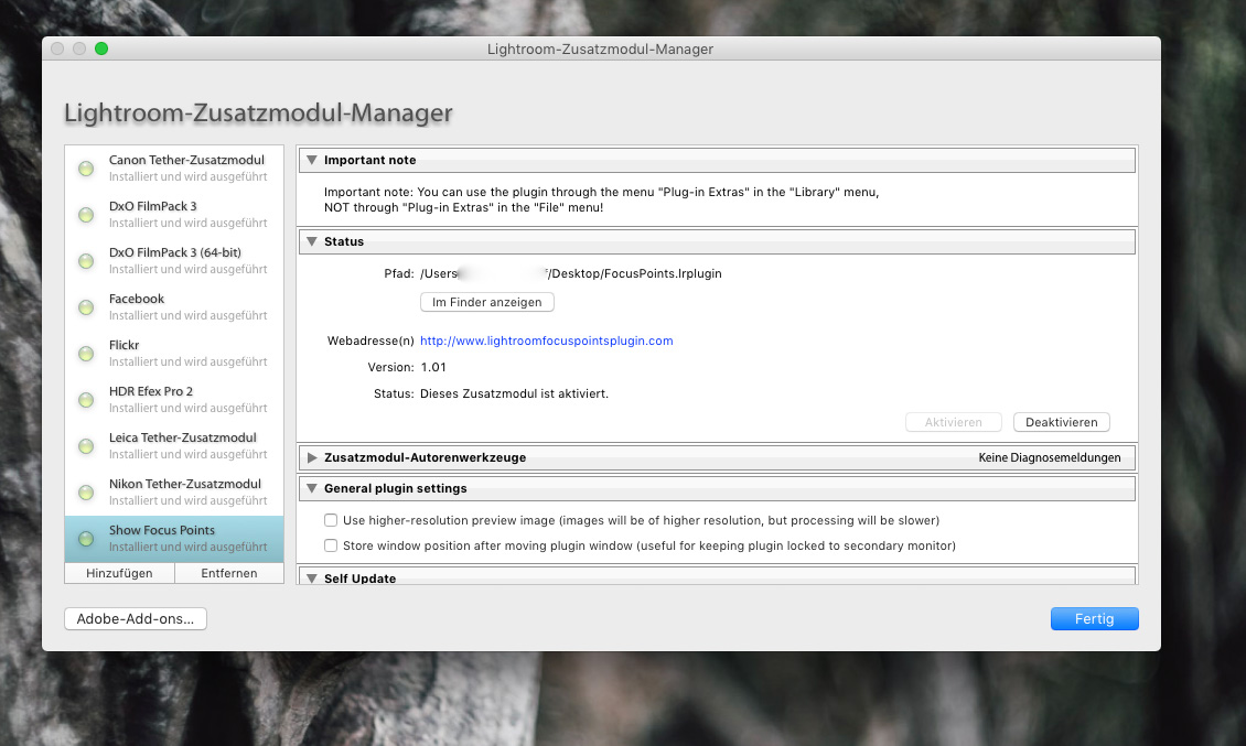 Ich hab da ein nützliches Plug-in entdeckt. Ab und zu möchte man ja vielleicht wissen, wo genau im Bild der Fokuspunkt gesetzt wurde. Das ging natürlich schon immer mit den RAW Konvertern, die mit der Kamera zusammen vom Hersteller geliefert werden, allerdings arbeitet nicht jeder damit, sondern hat sich oft für ein anderes Programm entschieden. Wollte man im Bild nachträglich den Fokus noch einmal überprüfen, so war man gezwungen, zwischen den Raw Konvertern hin und her zu hüpfen.
