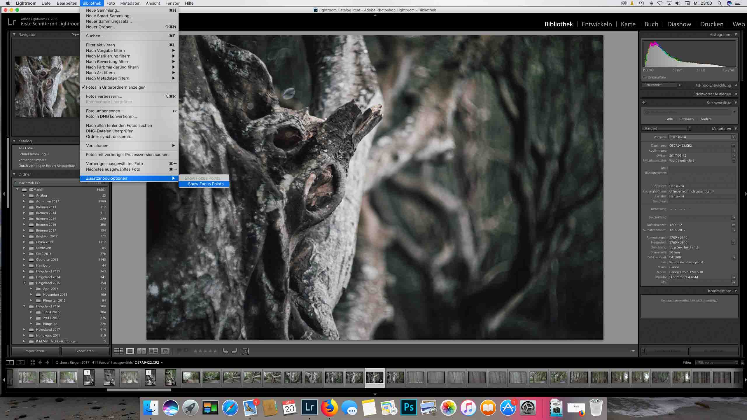 "Bibliothek"- "Zusatzmoduloptionen"- "show focus points"