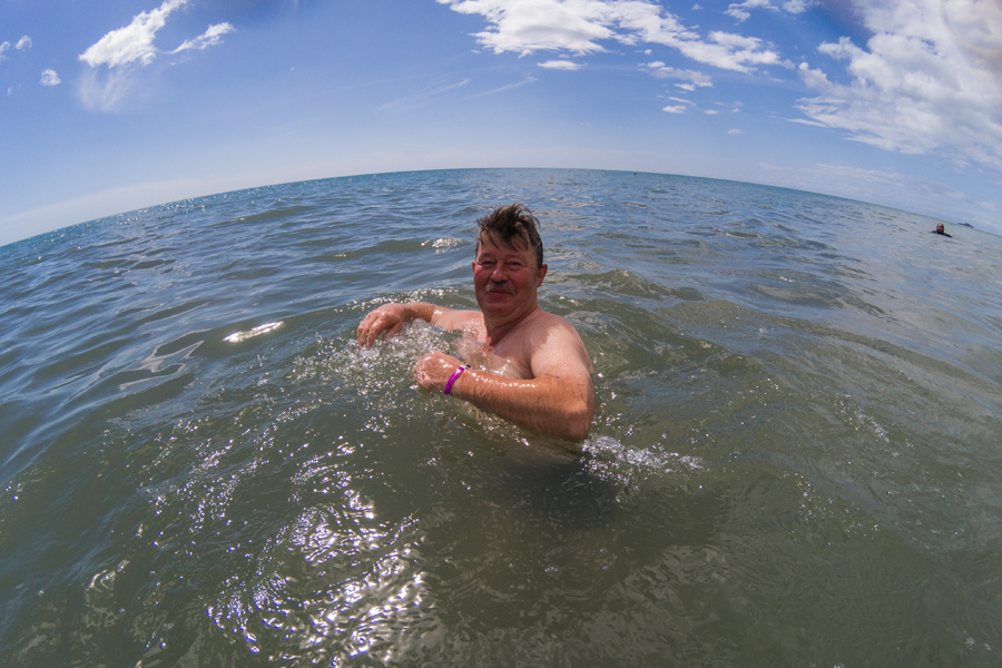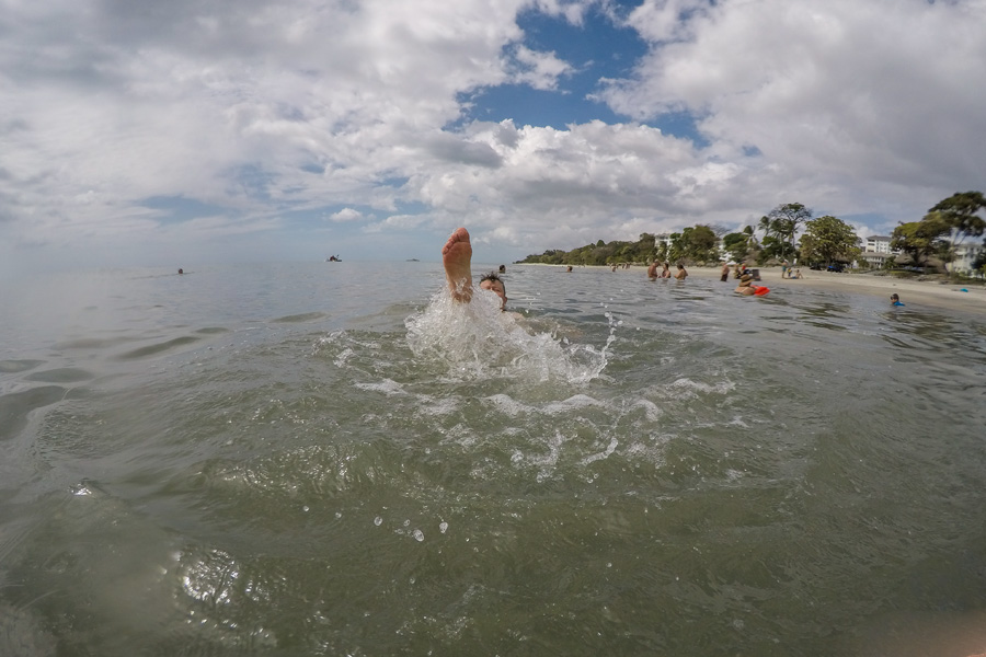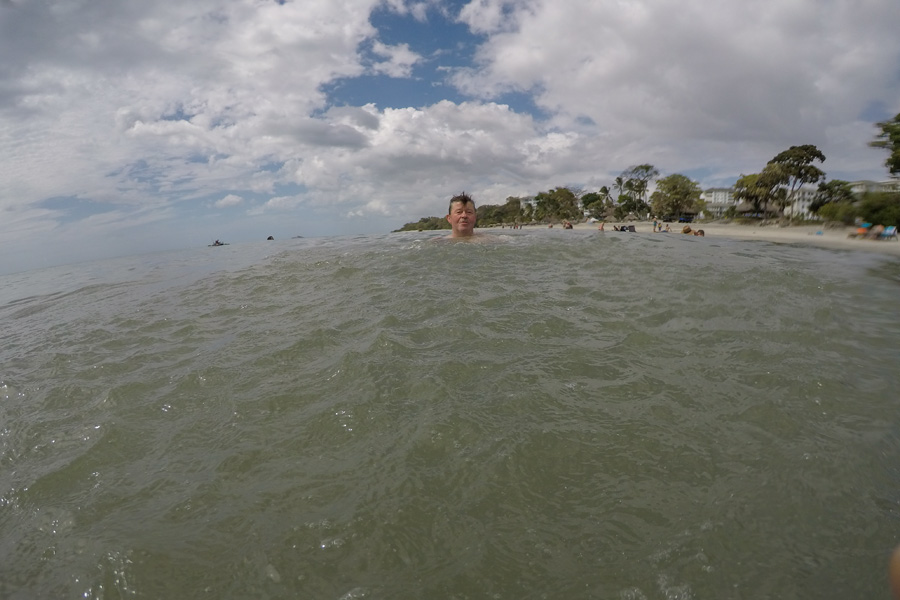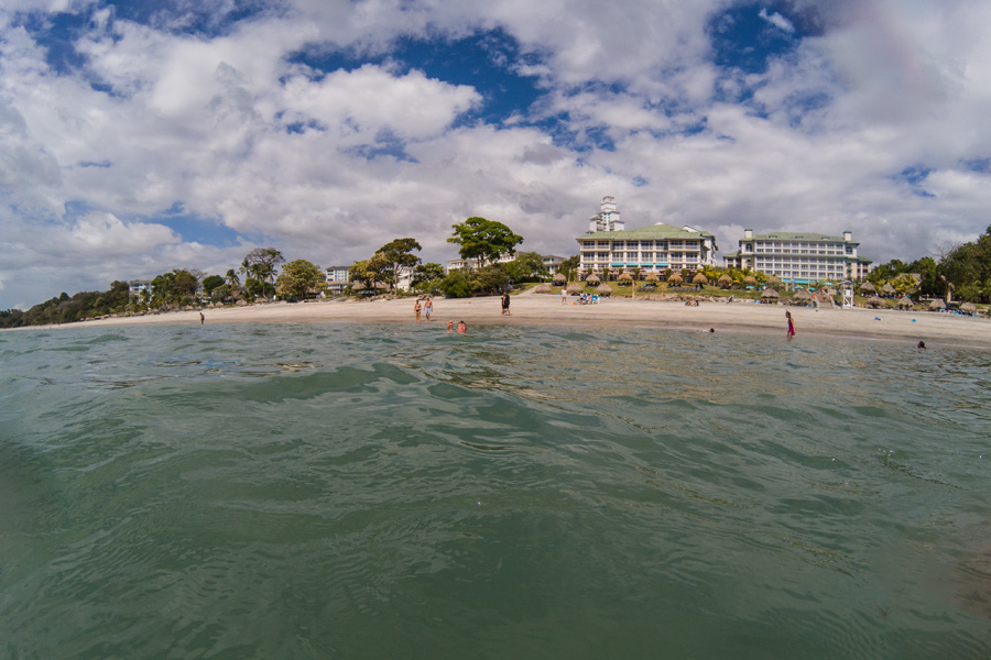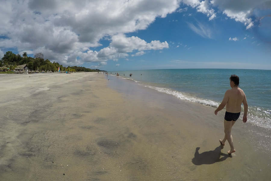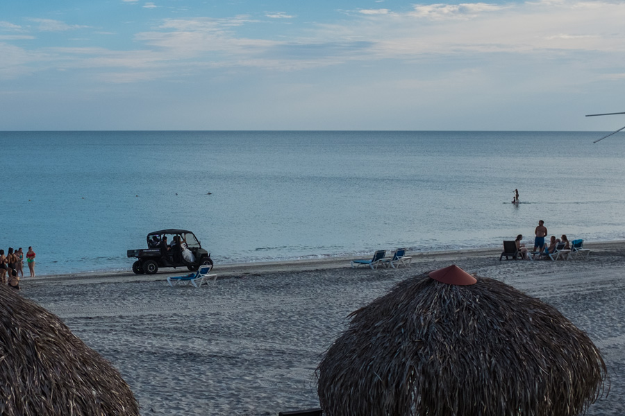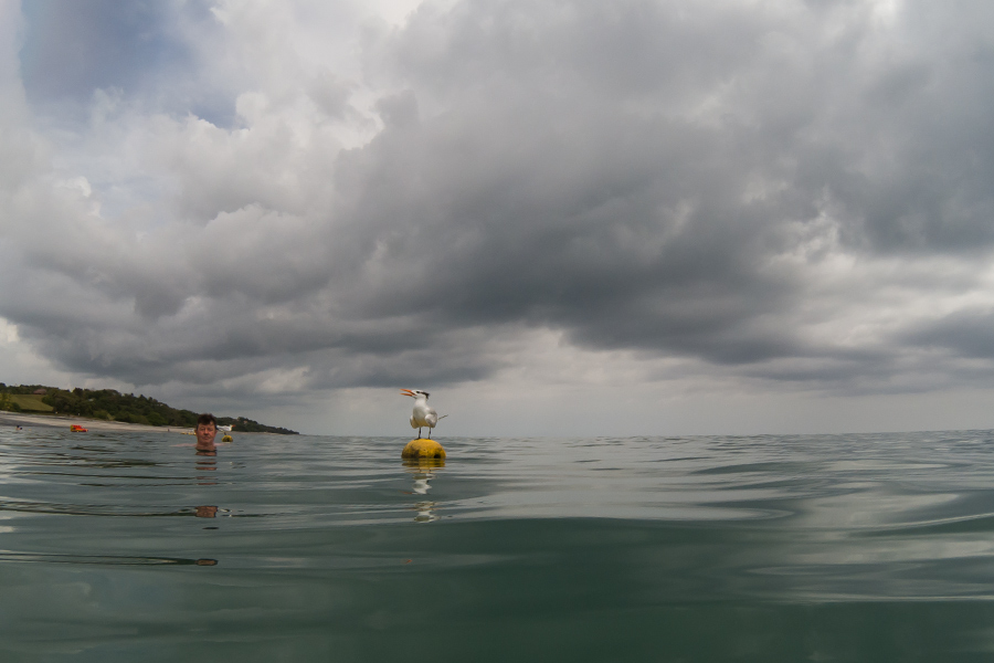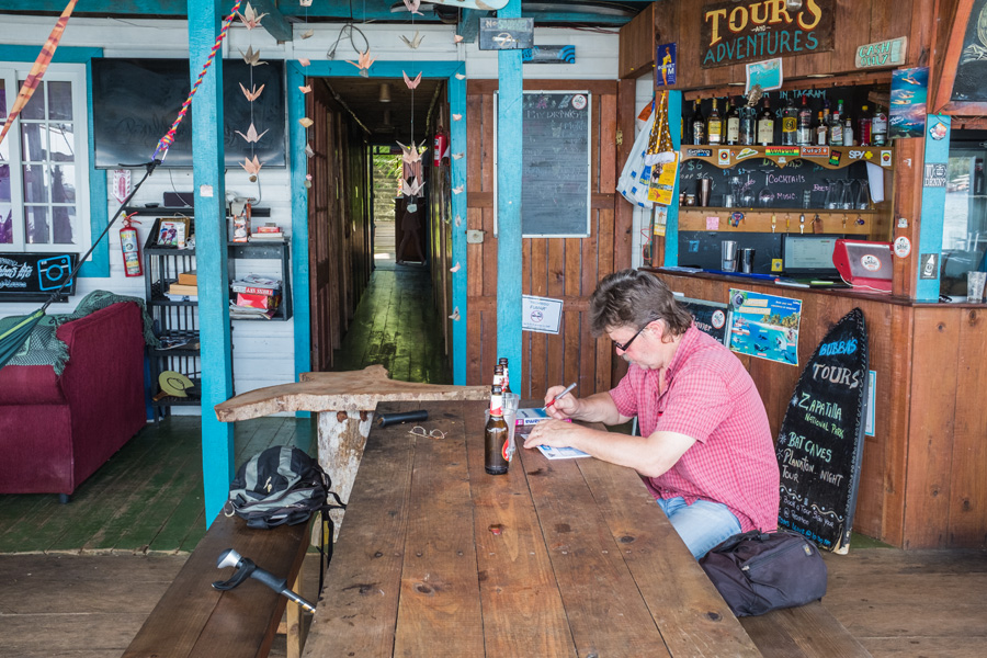 Hier gefällt es uns und wir bleiben ein langes Weilchen da. Man könnte auch ins Wasser springen, surfen oder eine Tour buchen. Wir wollen einfach nur sitzen und Nichtstun.