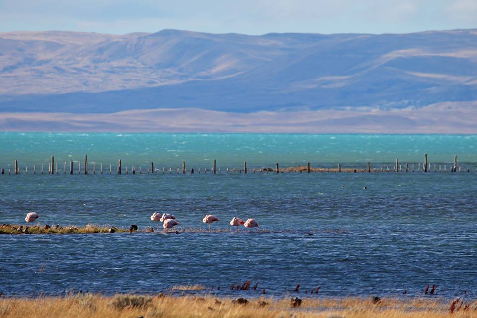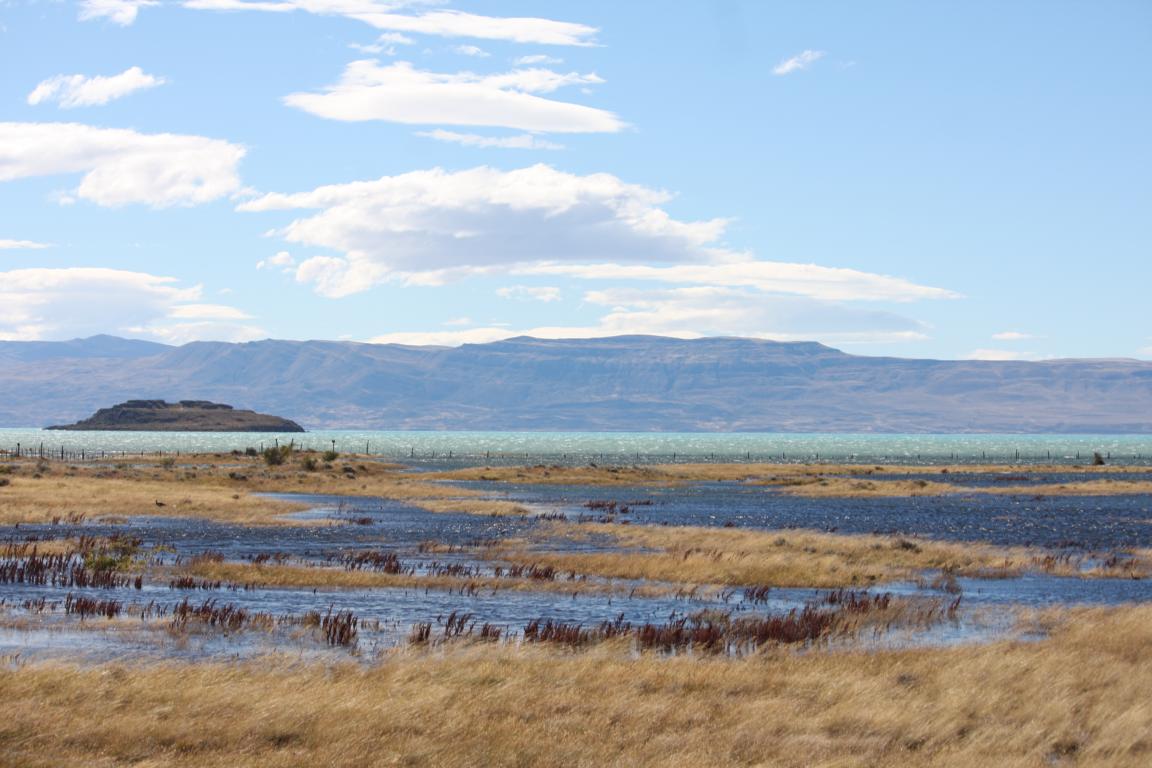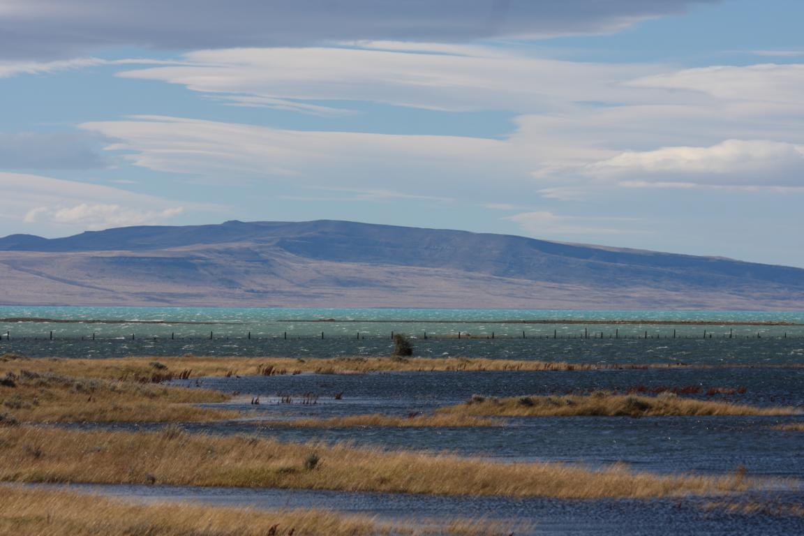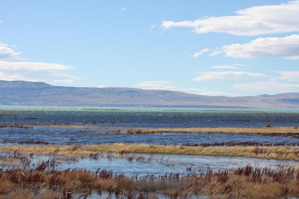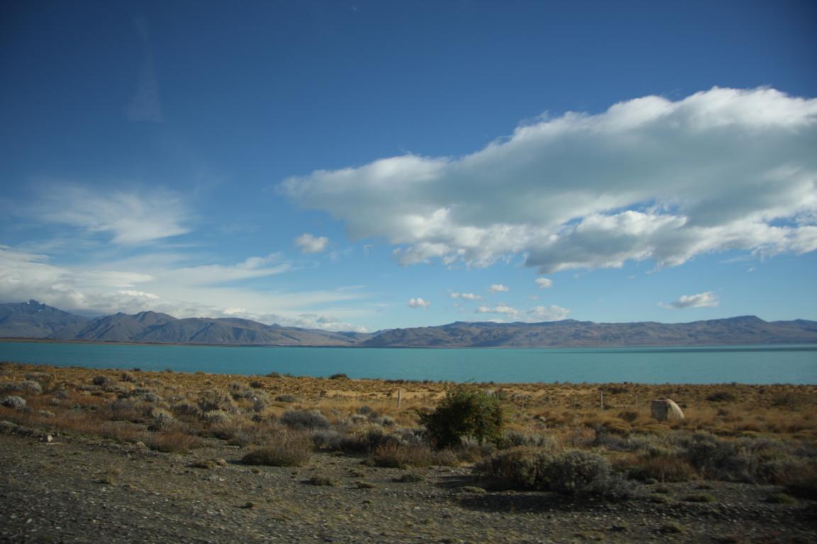 wir fahren am Rande von El Calafate mit dem AUto den See entlang und sind überrascht, was für eine Idylle wir finden