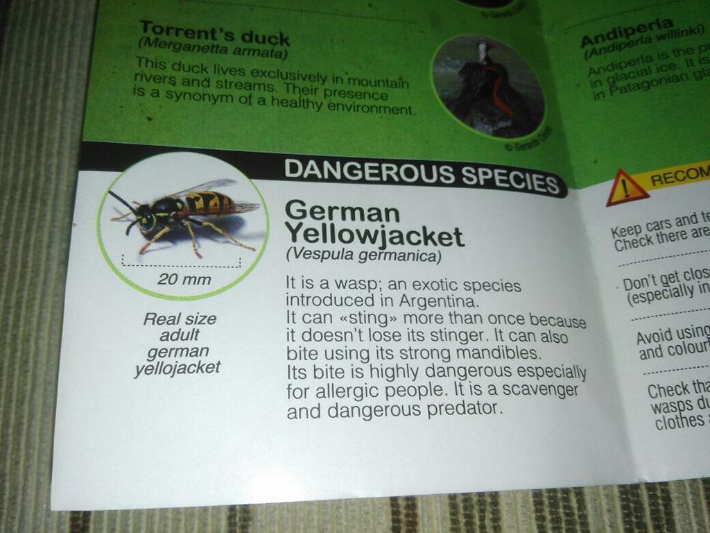 • Beim Eintritt in den Park haben wir eine englische Information erhalten. In dieser findet sich auch eine Warnung: Vor der Deutschen Wespe!