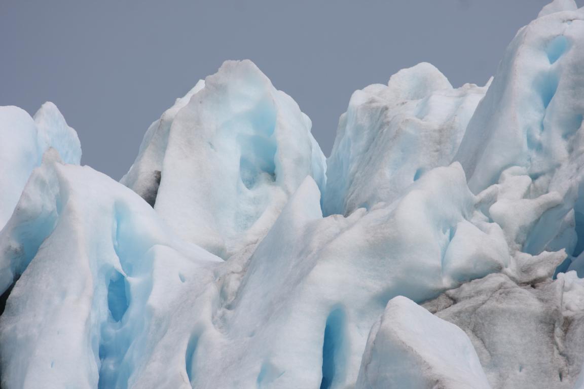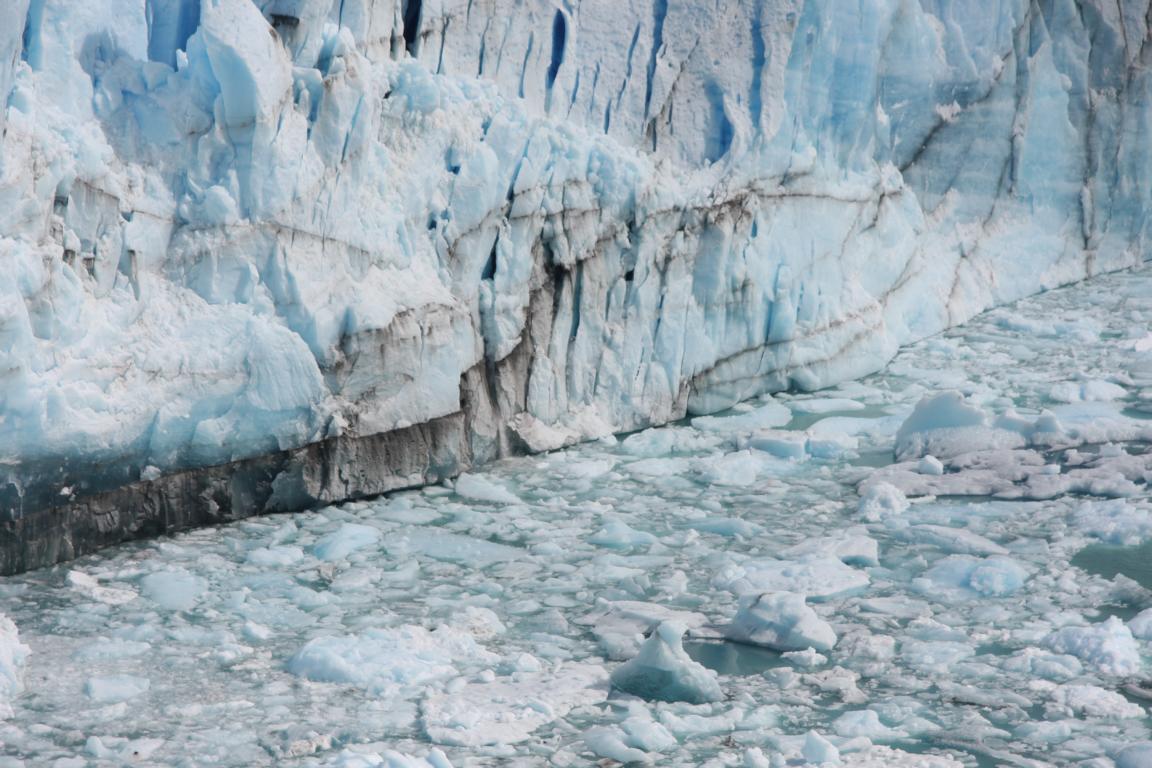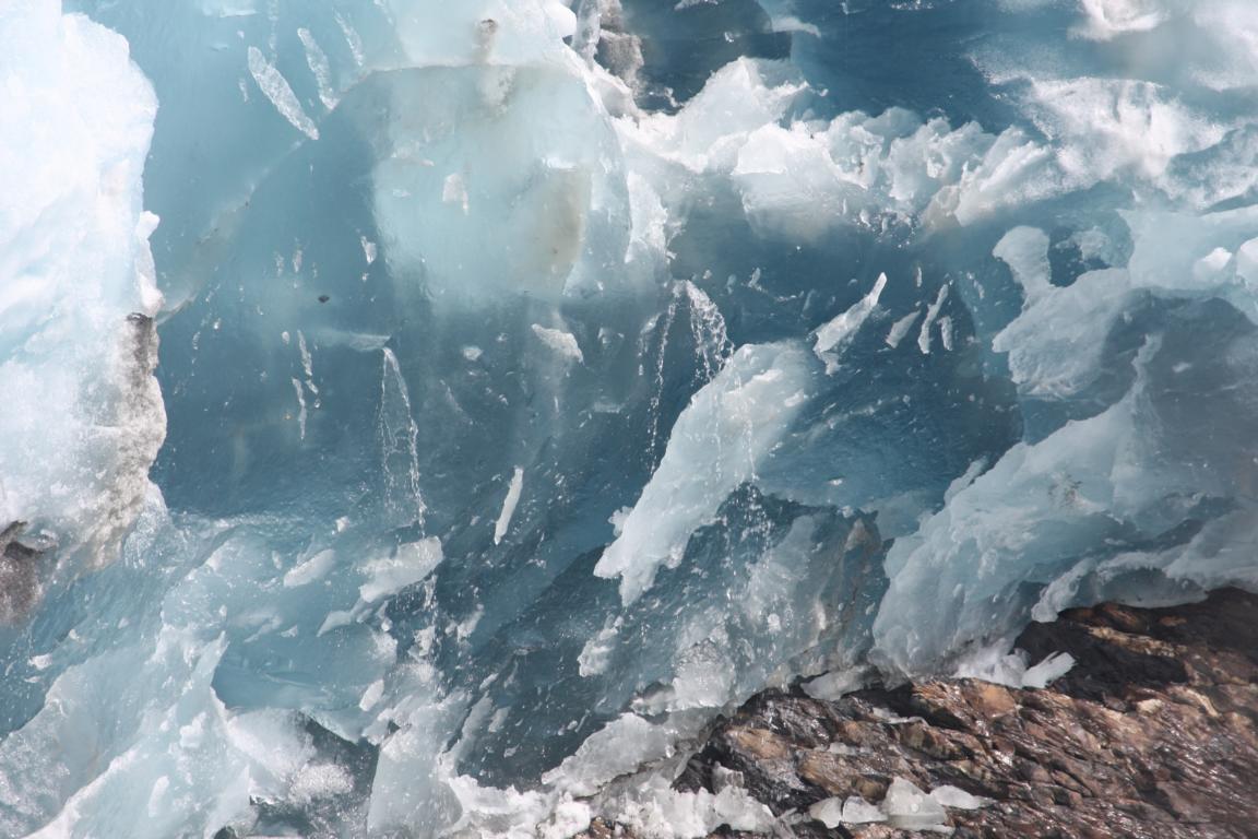 Immer wieder brechen kleine Teile des Gletschers ab - manchmal hört man es nur ein wenig Krachen und kann gar nicht ausmachen, wo etwas heruntergefallen ist, manchmal sieht man auch mehr