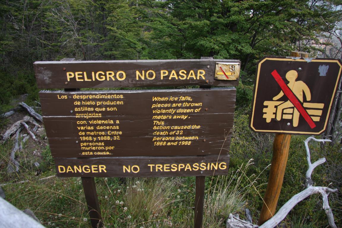Schilder warnen davor, die Weg zu verlassen. Menschen wurden schon von herabstürzenden Eismengenen erschlagen