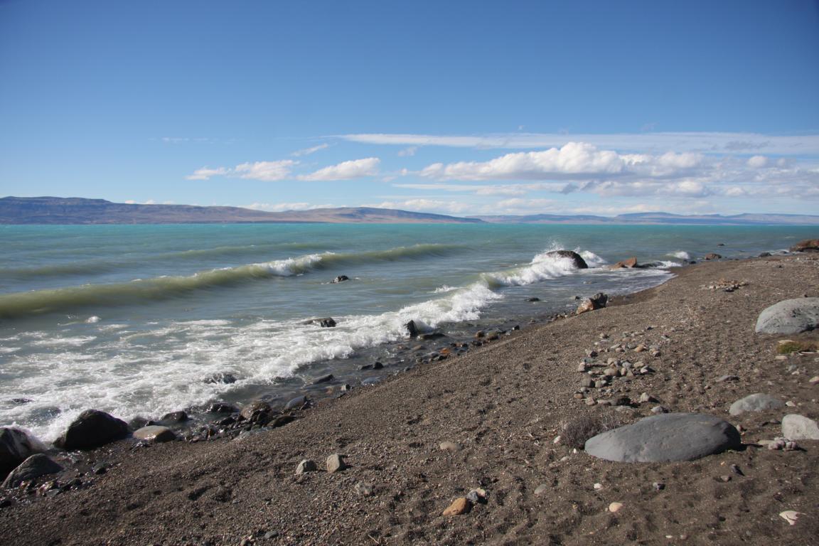 • Immerhin gibt es an diesem Ort Supermärkte, auch einen großen Laden. In dem kleineren versuchen wir zu erkunden, wie lange er offen hat - keine Chance. Englisch wird auch hier, wo es doch soviele Touristen gibt, nicht gesprochen. Wir wollen erst einmal zum See, dem Lago Argentino. Die Hauptstraße zieht sich ganz schön lang hin. Irgendwann biegen wir ab, am Platz der Helden vom Falklandkrieg, und sehen das Wasser.