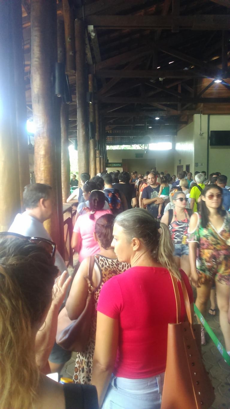 So langsam füllt sich der Wartesteg. der Bus ist zu spät und wird ziemlich voll. Um 10.46 geht es los nach Brasilien - bis dahin ist es nicht weit, dann heißt es raus aus dem Bus und durch die argentinische Passkontrolle, ausreisen. Rein in den Bus. Über die Grenze. Raus aus dem Bus und durch die brasilianische Passkontrolle, einreisen. Da nicht für alle Fahrgäste Plätze vorhanden sind, wechseln diese Besitzer der Sitzplätze je nach dem strategischen Platz im Bus (wie schnell komme ich raus um schneller wieder rein zu kommen). Nach ca. 40 Minuten kommen wir am Park an