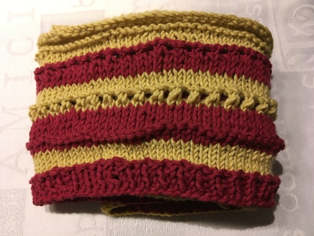 Ich habe 2 Stränge Doppeltes Perlmuster und einen Strang Einfaches Perlmuster gesrickt.