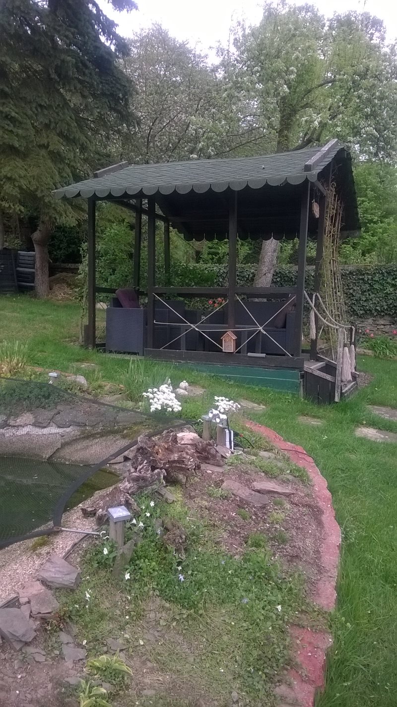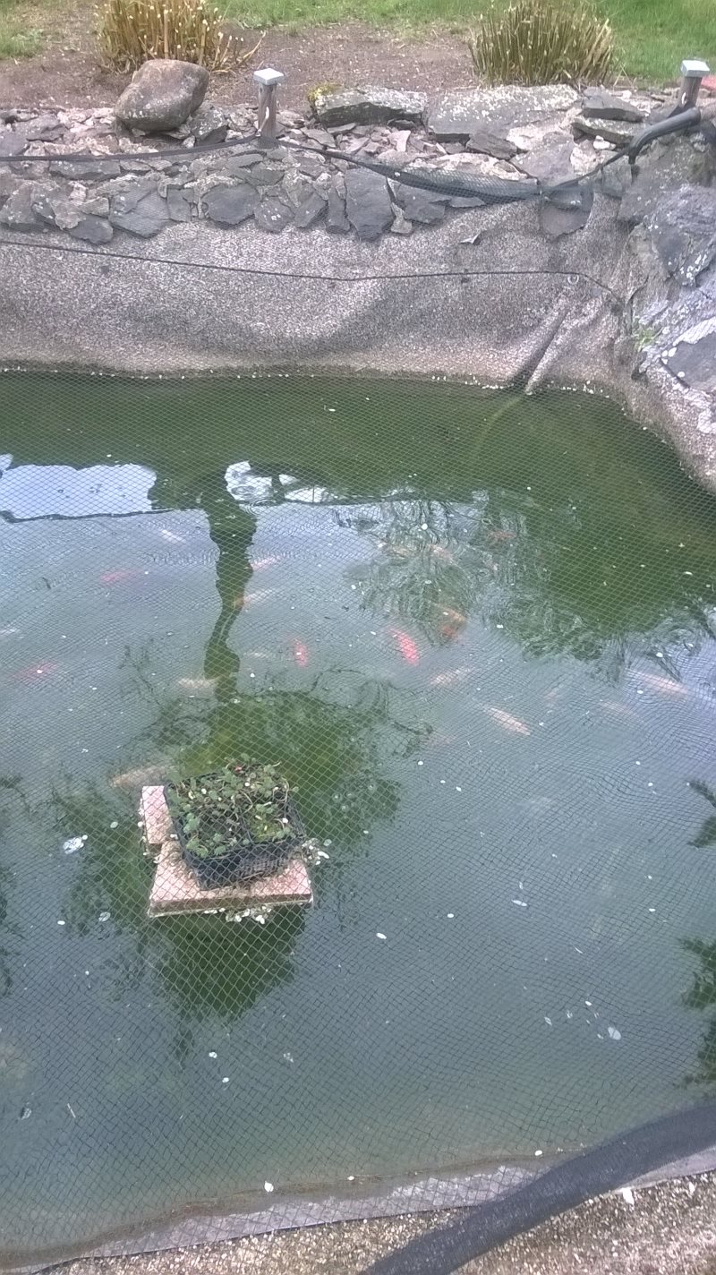 Allerdings sind schon 2 mal die Fische von Reihern gefressen worden, so dass wir jedes Mal neue kaufen mussten, deshalb mussten wir ein Netz über den Teich machen.