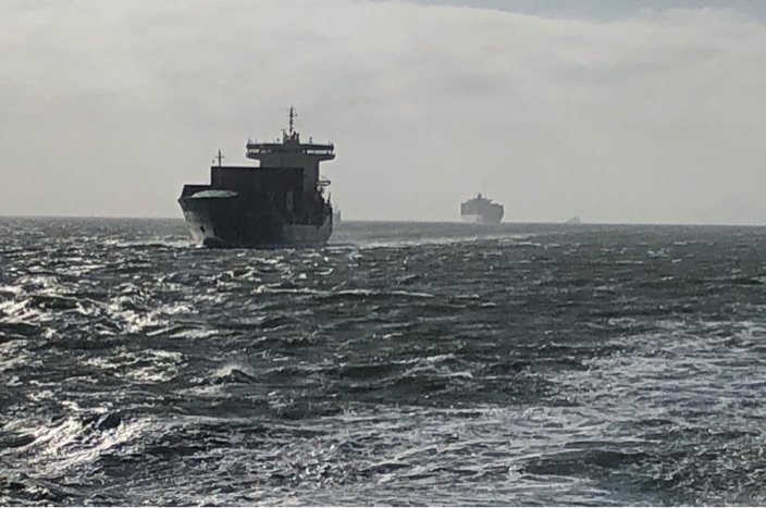 Die Wellen auf der Rückfahrt sehen nicht so ganz ohne aus, da wäre ich sicher mit einer Tüte rumgelaufen.