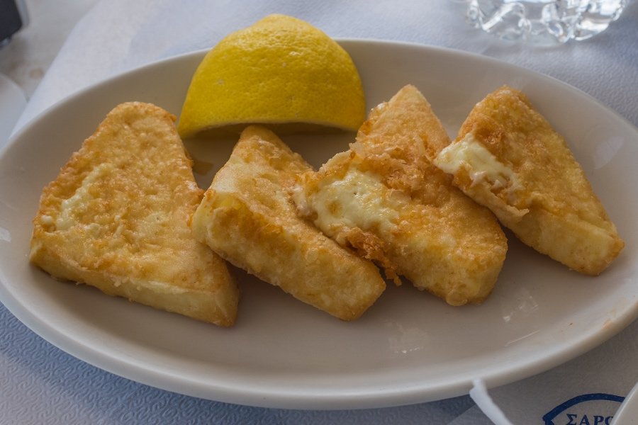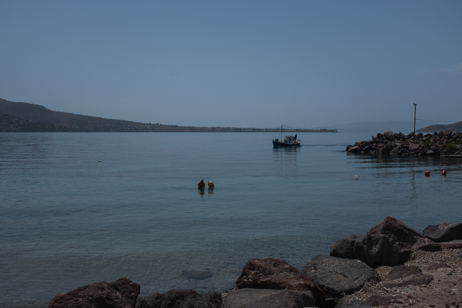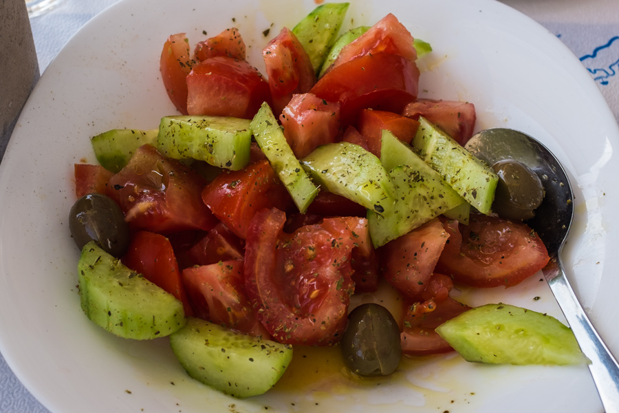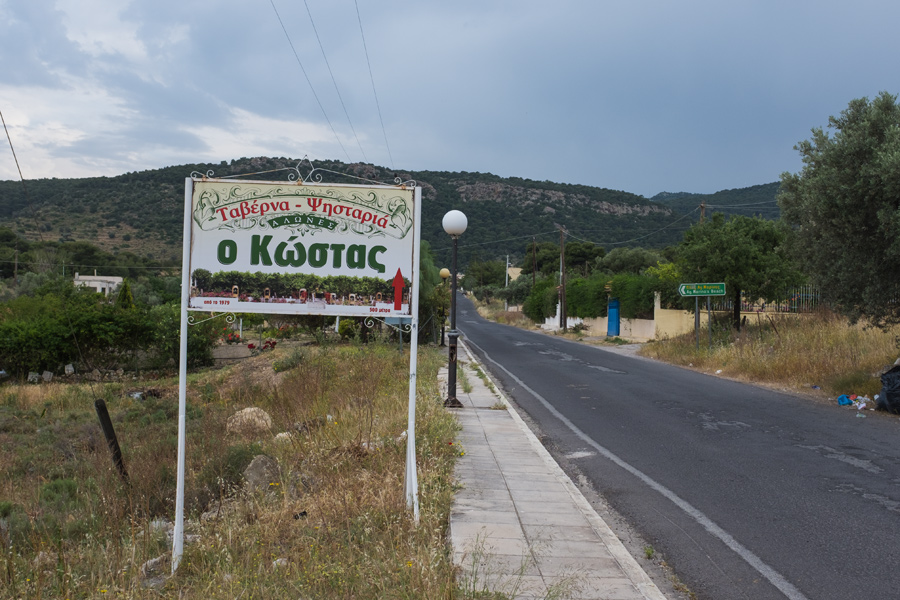 Der Hunger, besser gesagt der Appetit treibt uns in eine Taverne. Wir gehen dorthin, wo wir schon immer gegessen haben, wenn wir in Perdika waren. Früher gab es hier Claudia mit ihrem Mann, nun gehört sie jemanden anders. Das Essen ist vorzüglich. Schon wieder landen wir bei Meliziana Salata, Gurken-Tomaten-Salat und Saganaki... nur den Wein lassen wir dieses Mal aus, wir sind ja motorisiert unterwegs.