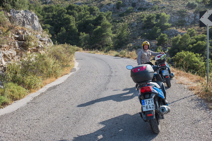 Der höchste Berg auf der Insel Ägina ist der Oros, ganze 532 m ist er hoch. Nein, wir wollten ihn nicht besteigen, das war uns viel zu anstrengend. Friedrich hat das schon einmal gemacht. Wir fuhren aber ein kleines Stück den Berg hoch, bis der Weg für unsere Maschinen nicht mehr geeignet war.