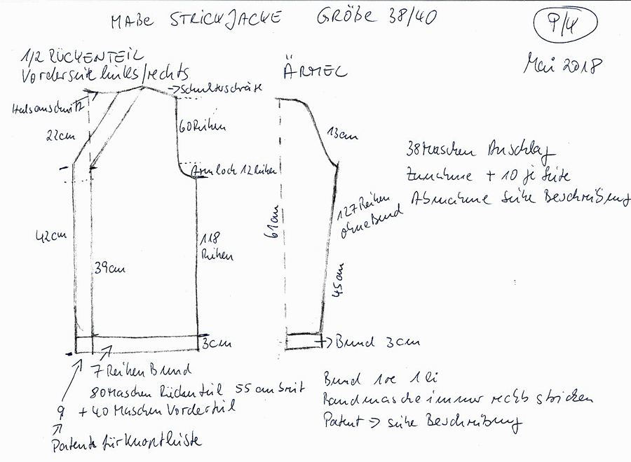 nun ist meine Strickjacke endlich fertig geworden und ich bin sogar sehr zufrieden mit dem Ergebnis. Ich gebe zu, es war nicht immer einfach und ich musste wirklich sehr oft aufribbeln und neu stricken. Irgendwie wollte ich diese Jacke besonders gut herstellen, denn ich will sie ja selber tragen.