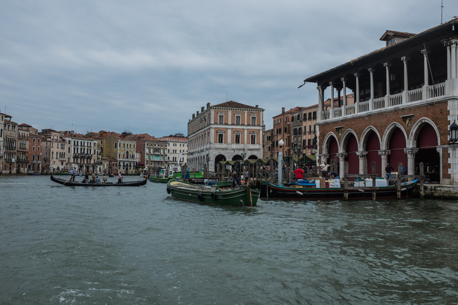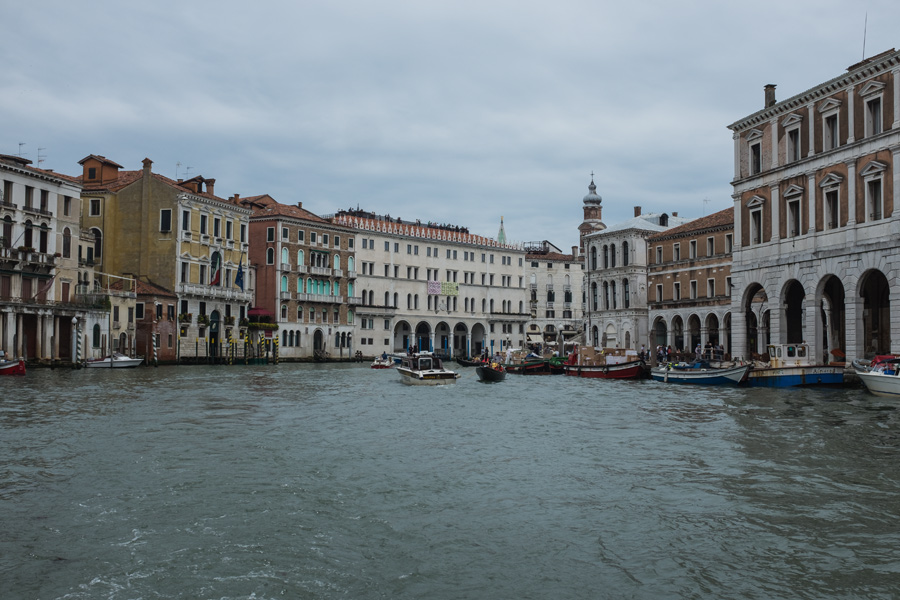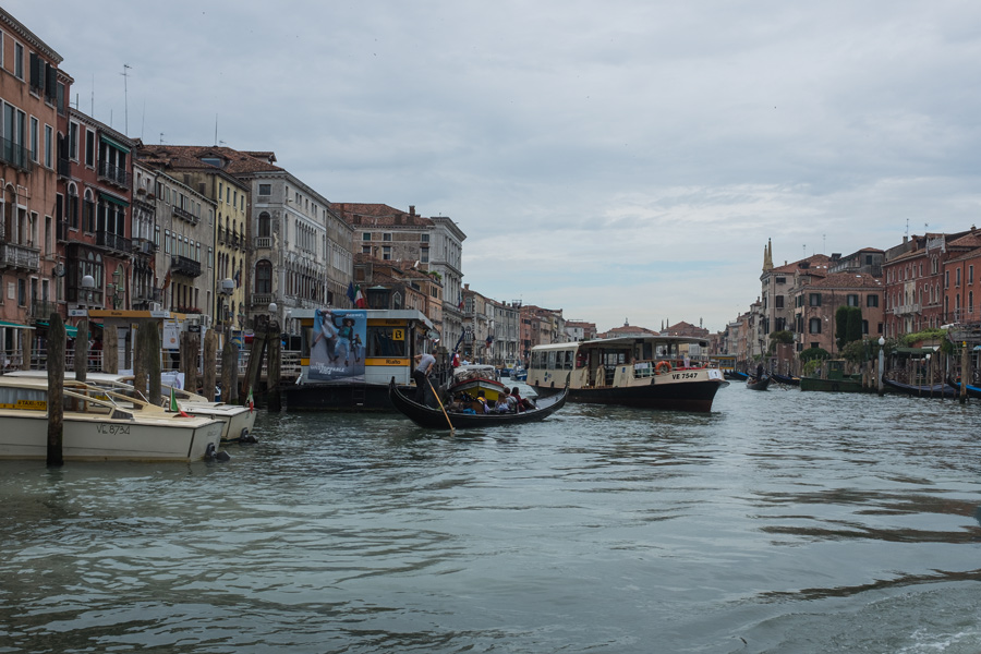 Dieses Mal saßen wir ganz hinten im Vaporetto und zwar draußen und es war anfangs nicht so voll. Ab Rialto-Brücke füllte sich jedoch das Boot.