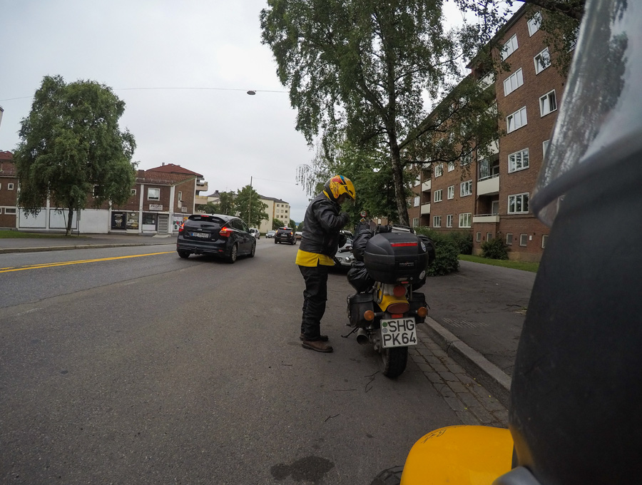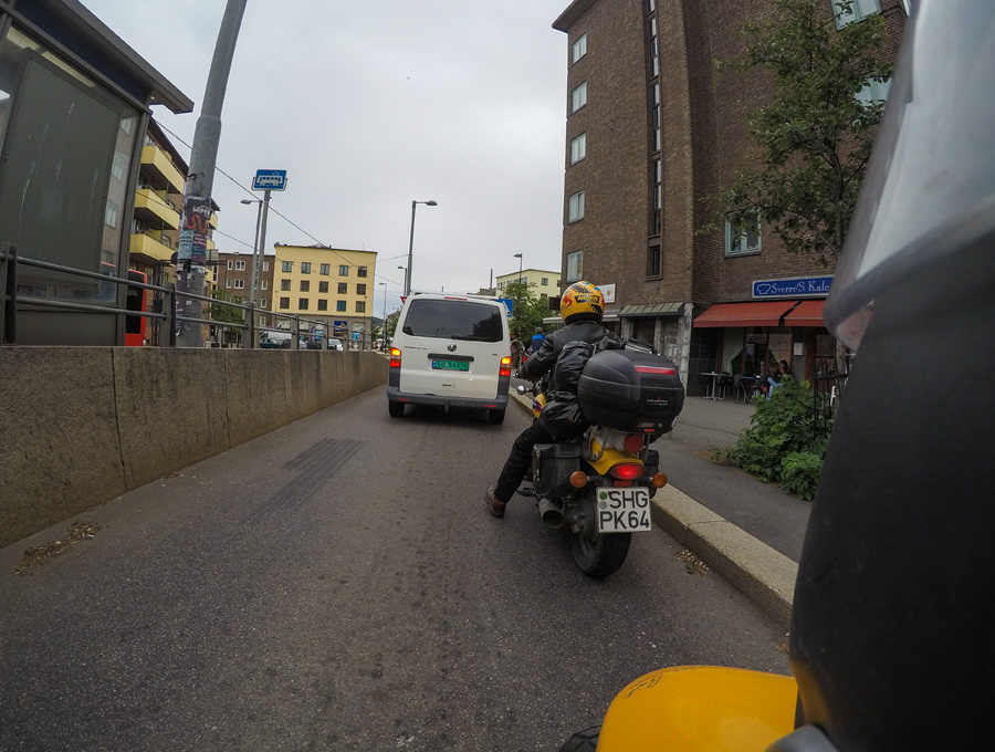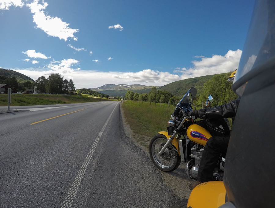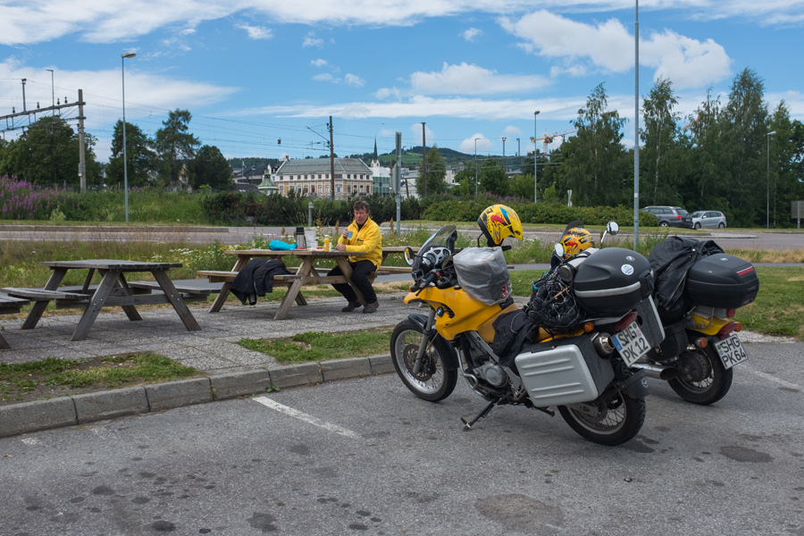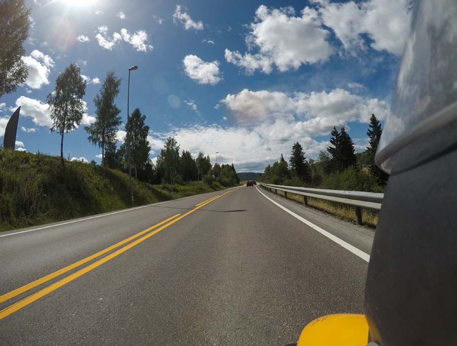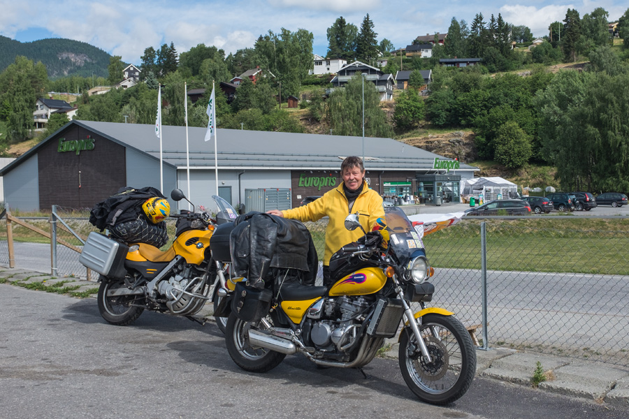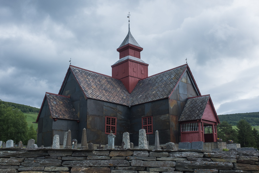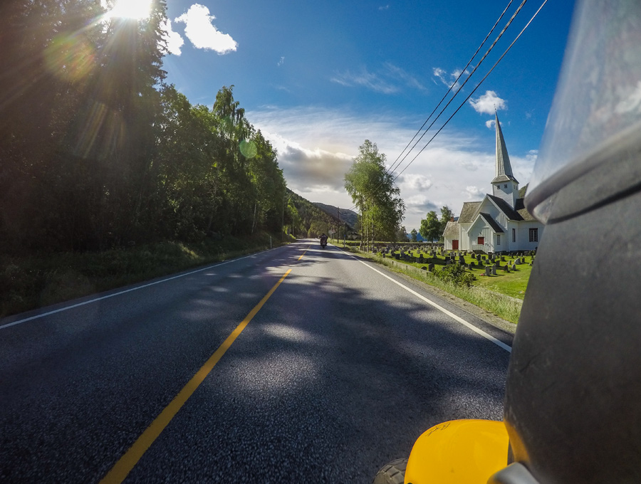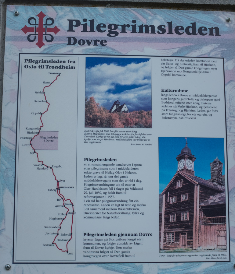 Wir stellten unsere Motorräder ab und gingen zur Kirche. Interessant war für mich, von hier sind es genau 250 Kilometer bis nach Nidaros (Trondheim). Denn genau hier verläuft der Olavsweg von Oslo nach Trondheim.