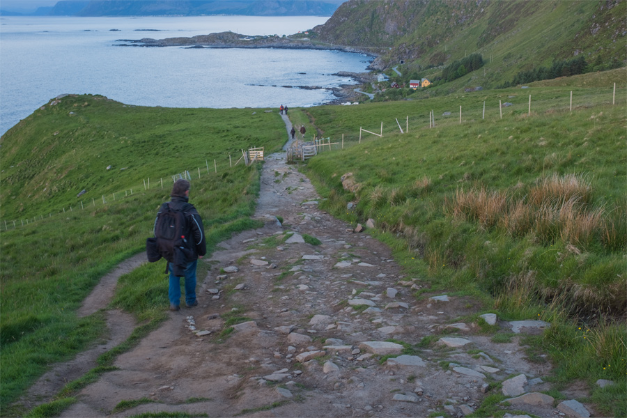 Dieses Mal sind wir schon um 18:30 losgefahren, Karin und Tim haben uns mit dem Auto nach Goksøyr mitgenommen. Ab da liefen wir zu Fuß. Wir sind extra schon so "früh" losgegangen, damit wir einen guten Platz auf dem Vogelfelsen bekamen.